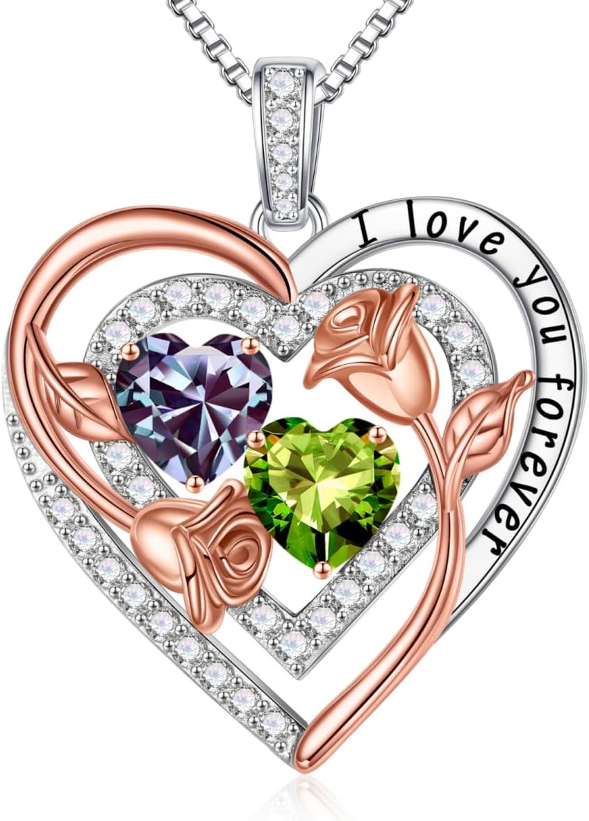 - UNIQUE GIFTS: The elaborate double birthstone necklace, one representing your birth month and one representing hers, represents the two of you forever tightly held together. Unique necklace send to the best women in your life and let her know how much she means to you. This birthstone necklace, a perfect gift for your love on Christmas, Anniversary and Birthday.