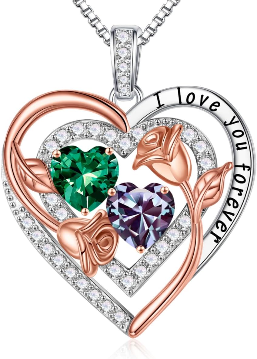 • UNIQUE GIFTS: The elaborate double birthstone necklace, one representing your birth month and one representing hers, represents the two of you forever tightly held together. Unique necklace send to the best women in your life and let her know how much she means to you. This birthstone necklace, a perfect gift for your love on Christmas, Anniversary and Birthday.