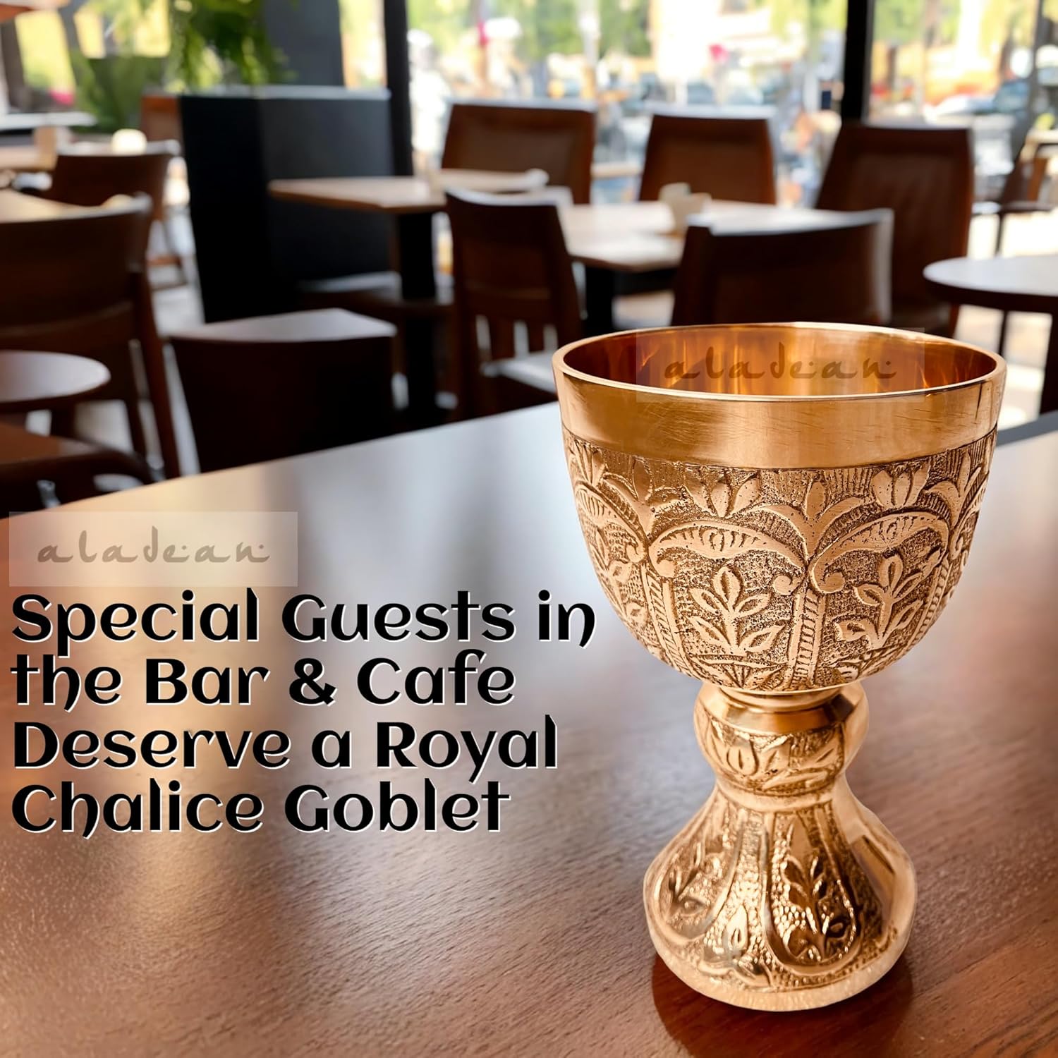 - Medieval Lord's Goblet Vintage Chalice of Royal King Queen - 1pc of Heavy Solid Brass Embossed Design Lord & King Style Medieval Chalice Goblet - Steampunk Gothic Retro theme. 1 pc wine cup chalice goblet. Luxury ceremonial drinkware to make you feel like a king & queen.
