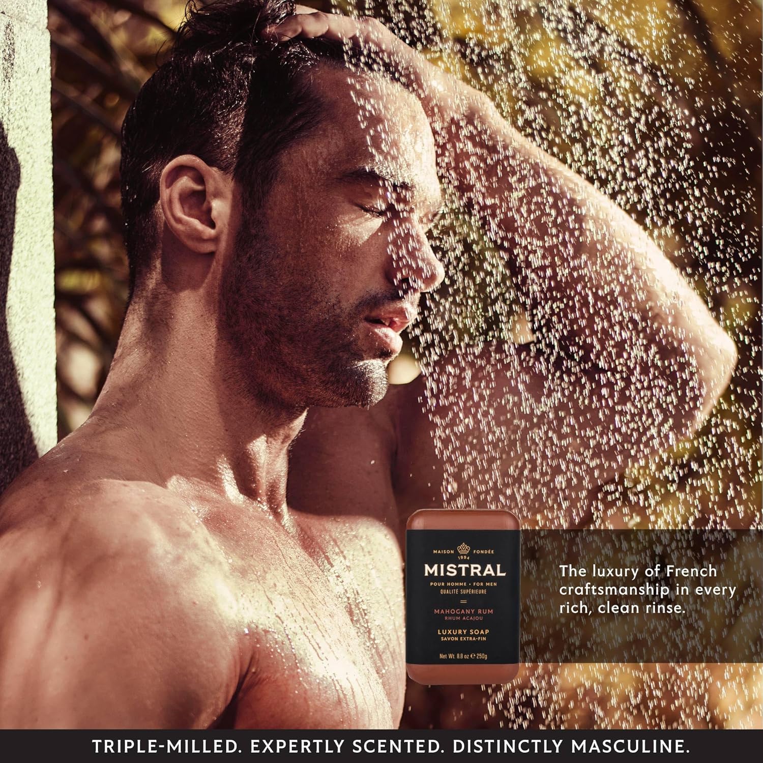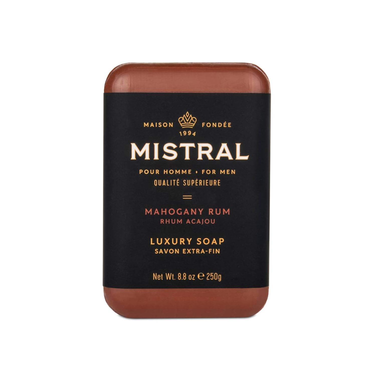 Mistral Mahogany Rum Luxury Bar Soap for Men | Men’s Natural Soap Bar | Paraben, Phthalates Free | Moisturizing & Triple-Milled Natural Soap for Men - Made in France | Large, 8.8 oz