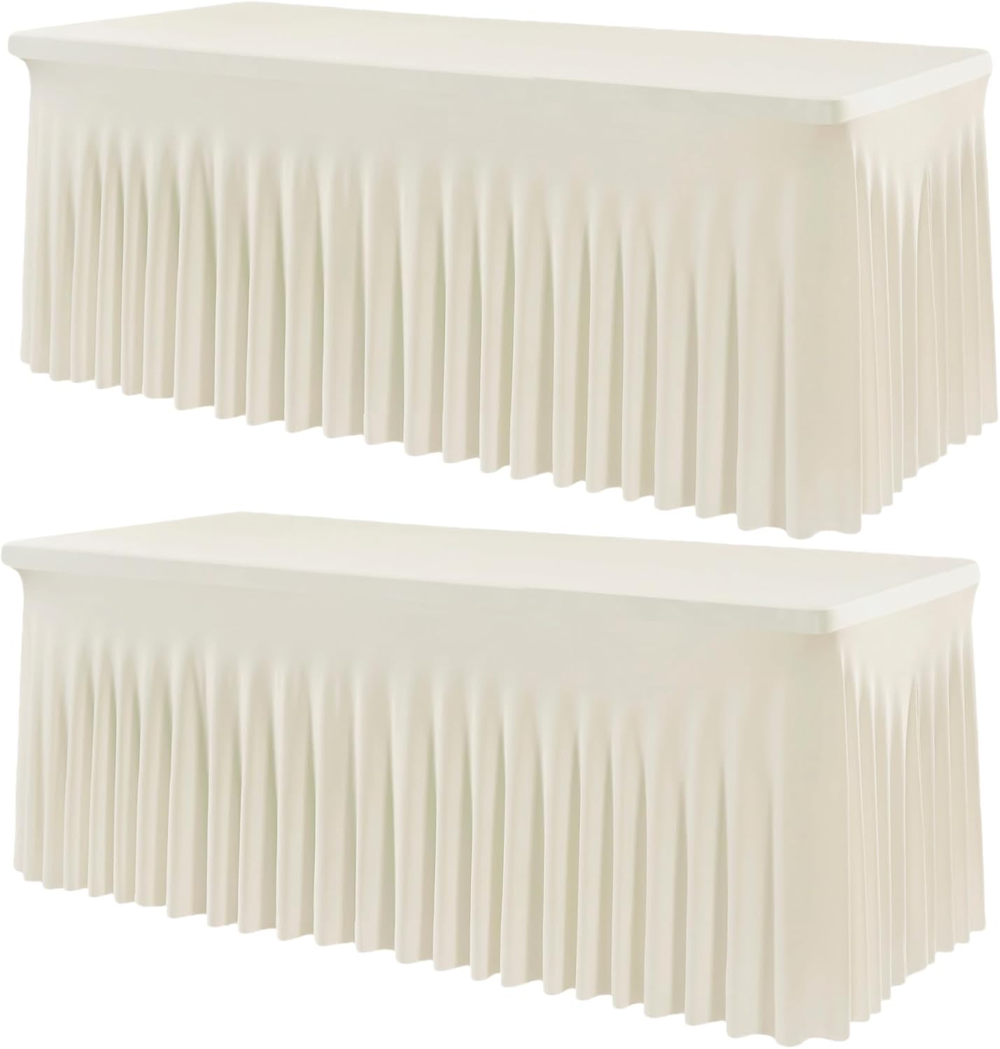 Outpain 8ft Spandex Table Cloth for Standard Folding Tables-2Pack Ivory Table Cloth Table Protector for Party, Wedding, Cocktail, Banquet, Festival