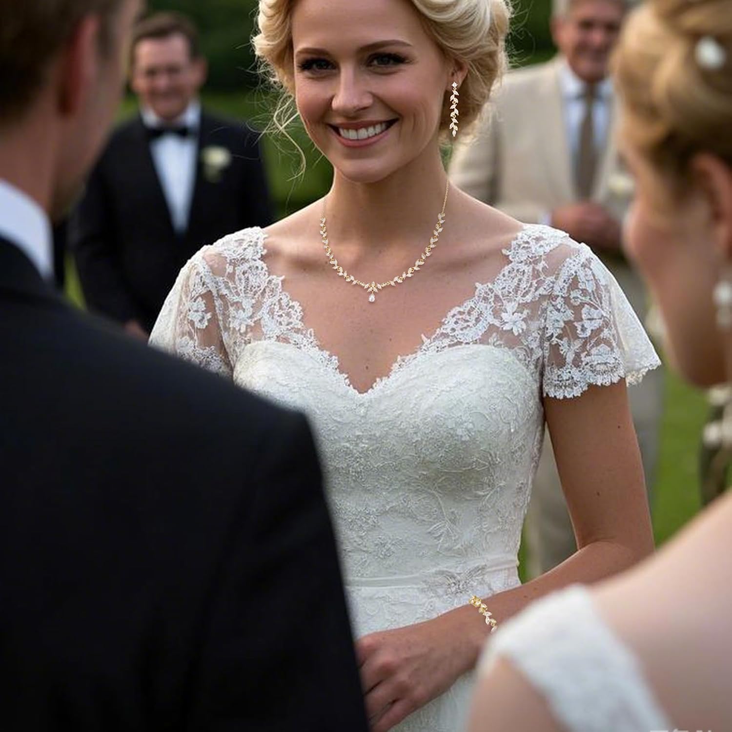 - Material and Craft:Bridal jewelry set for wedding.Sparkling necklace and earrings set.With a fabulous design and solid construction.The classic and elegant always keep pace with fashion,which will make a timeless accessory to any jewelry collection. Can be worn with classy casual with formal attire or Wedding dress.Adorned with Hearts and Arrows Cut Cubic Zirconia, crafted with eco friendly brass, this special design is born to match the clothes and your unique beauty.