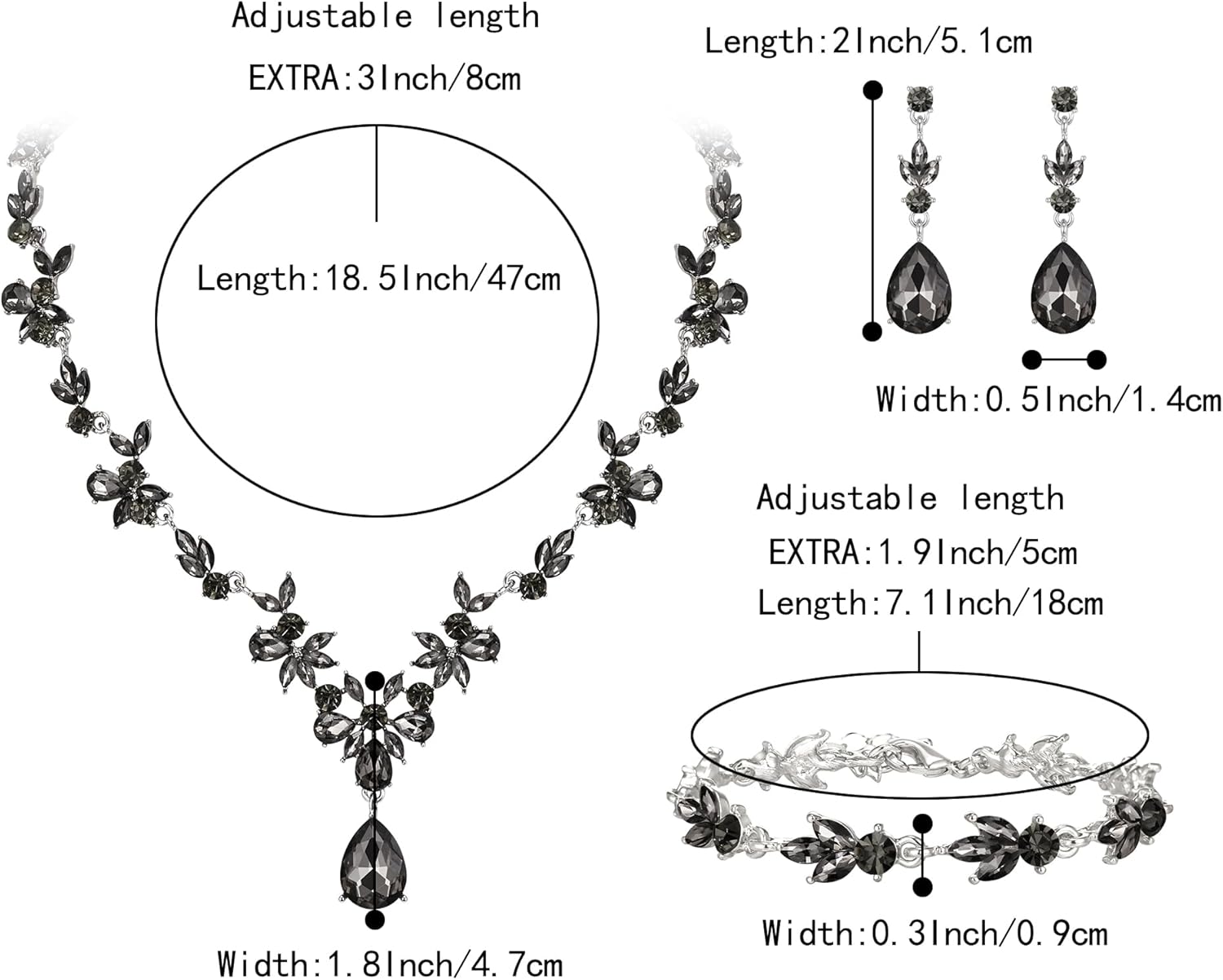 - ♥ Specifications & Size ♥: Necklace: Pendant Size:14.1*1.8 in; Chain Length (Adjustable): 18.5-21.5 in. Earrings (Pierced): 2*0.5 in.Bracelet Length:7.1-9in,Width:0.3in .Total Weight:59.7g.