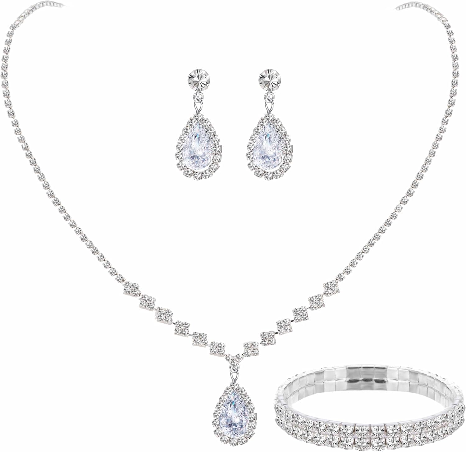 - Fabulous Design: The elegant TEARDROP DESIGN cubic zirconia wedding bride bridesmaids jewelry sets embody the wisdom of several designers, which fully express the meaning of love. This teardrop costume jewelry set has wonderful combination of necklace, earrings and bracelet, which can wear together or seperately for formal or special occasions.
