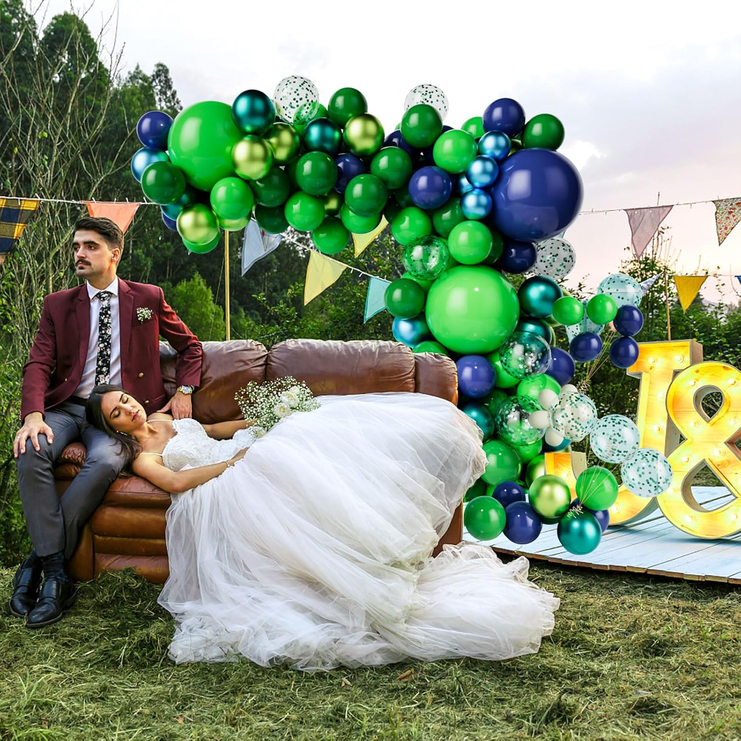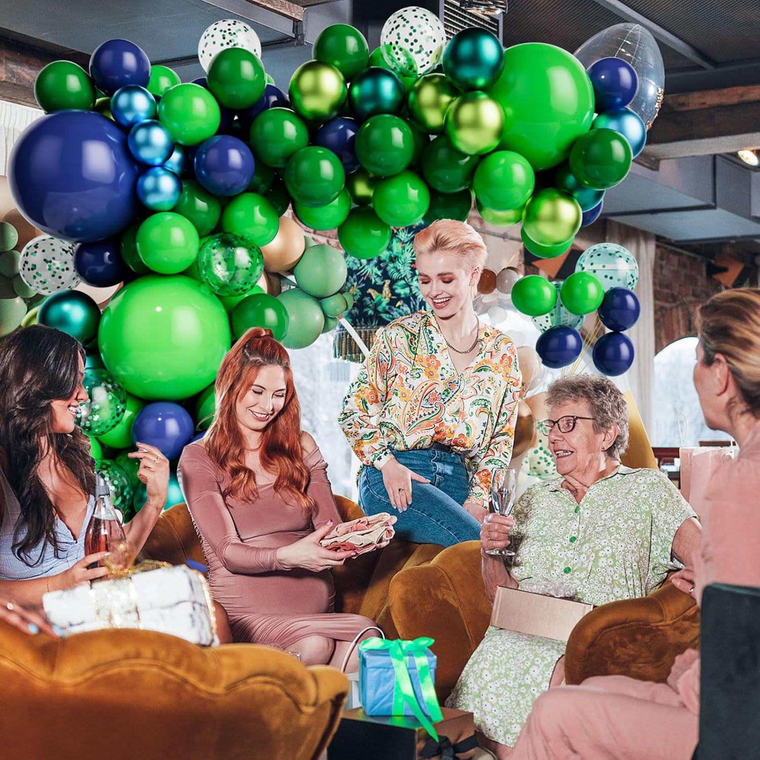 Green Dark Blue Balloon Garland Arch Kit, Dark Blue and Green Latex Balloons, Confetti Balloons for Wedding Birthday Festival Graduation Party Decorations