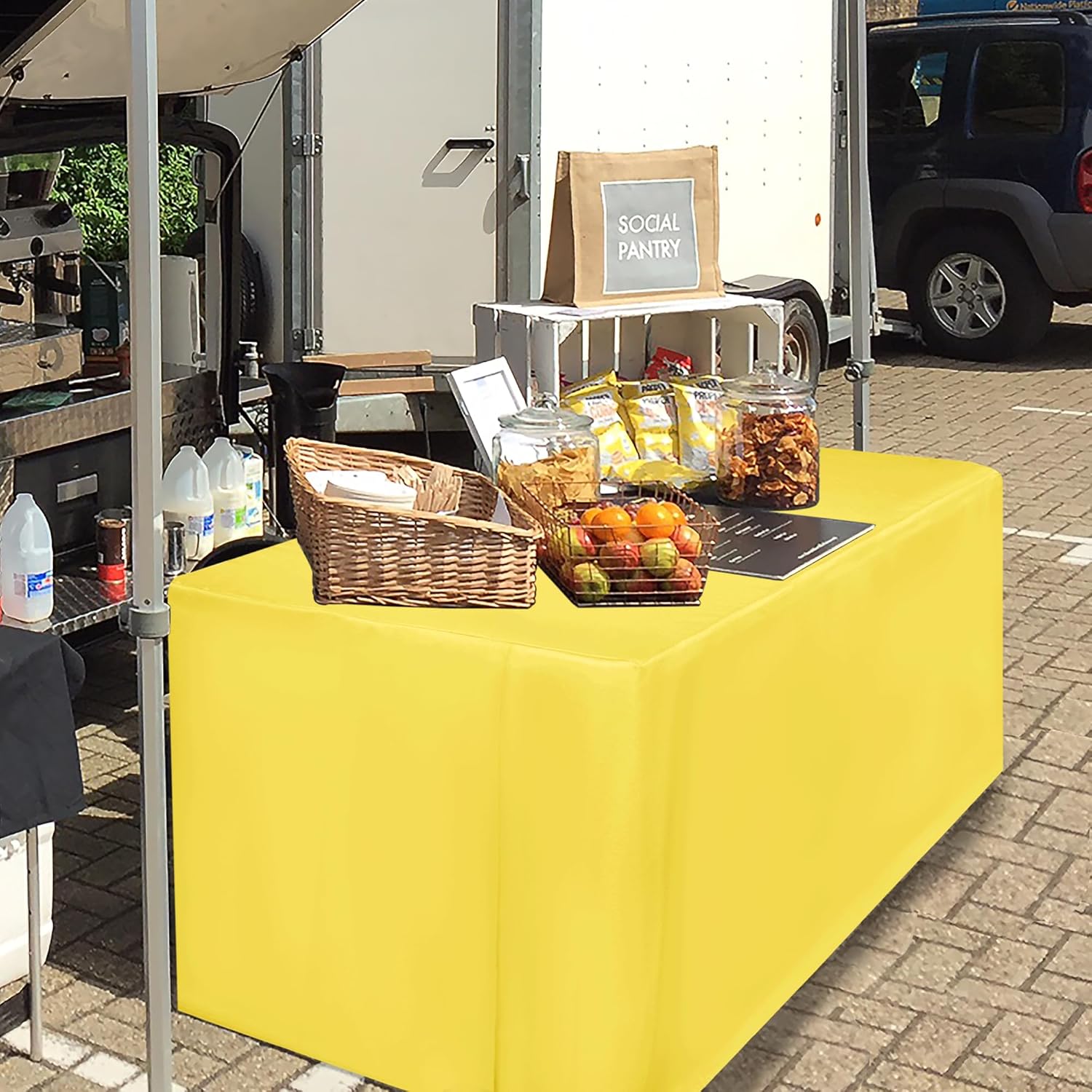 HolidayIdeas Yellow Fitted Table Covers for 6 Foot Tables - 72 x 30 Inch - 2 Pack Rectangle Table Clothes Polyester Fabric Table Cover for Folding Table, Parties, Birthday, Vendor Stand, Trade Show