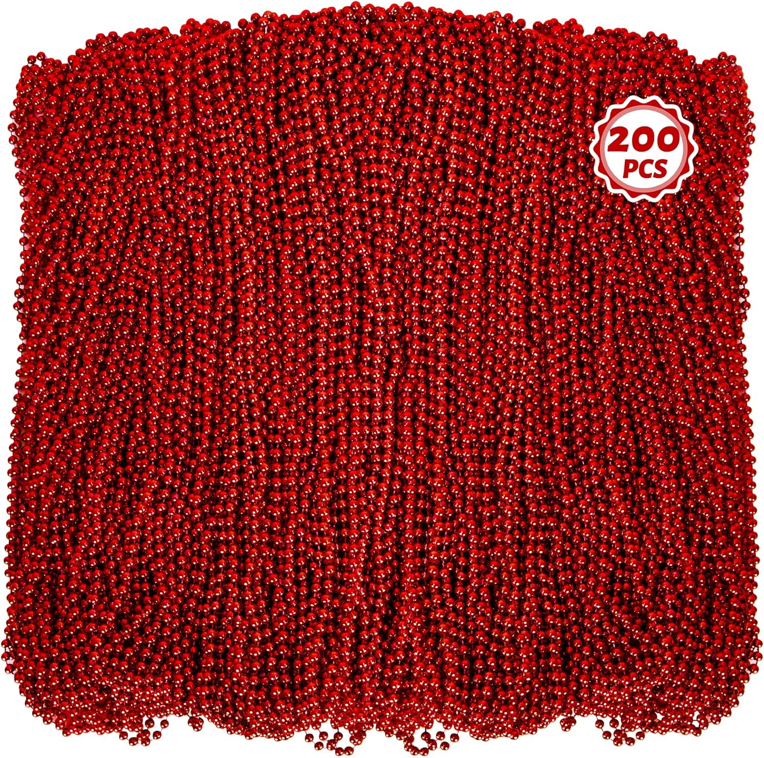 200 PCS Bead Necklace, 33 IN Red Mardi Gras Beads, Mardi Gras Party Costume Accessories, Parade Throws Beads Bulk for Christmas Pirate Wedding Baby Shower Party Supplies Decor