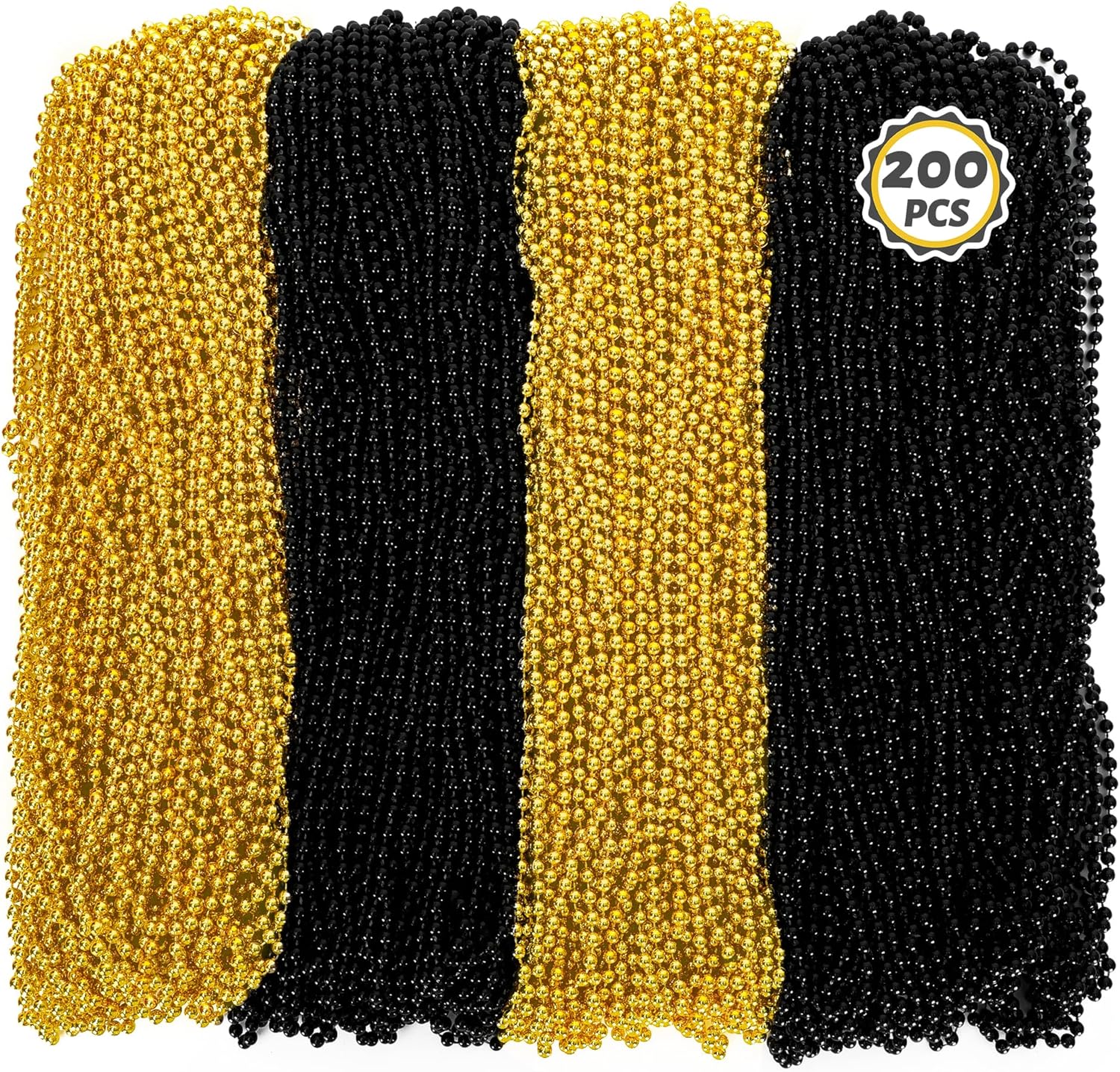 200 PCS Beaded Necklace, 33" Mardi Gras Beads, Black Gold New Year Party Supplies, Mardi Gras Accessories, Bead Necklace Parade Throws Bulk for Festival Event Christmas Pirate Party Supplies