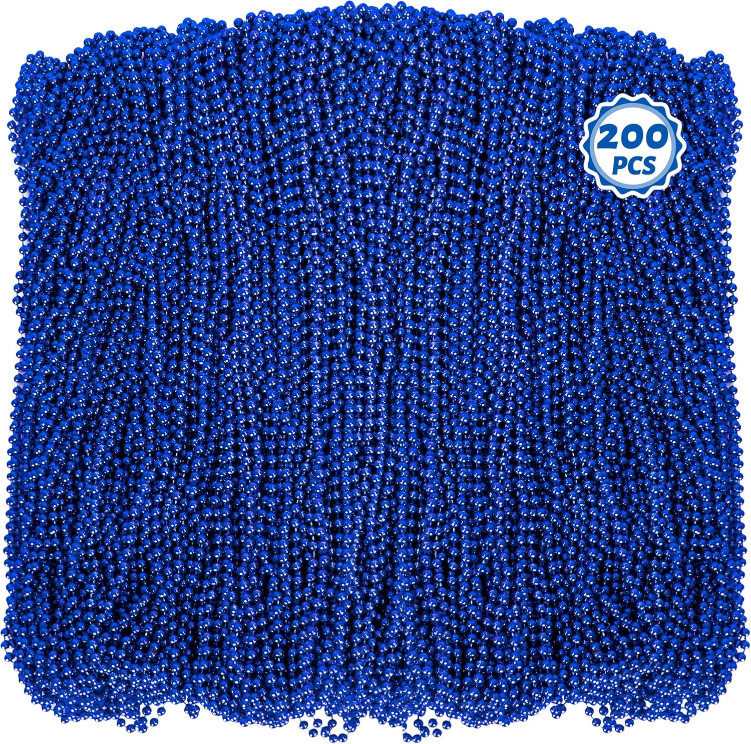 200 PCS Beaded Necklace, 33" Mardi Gras Beads, Blue Bead Necklace, Mardi Gras Accessories, Parade Beads Bulk for Hanukkah Christmas Pirate Birthday Gender Costume Party Supplies