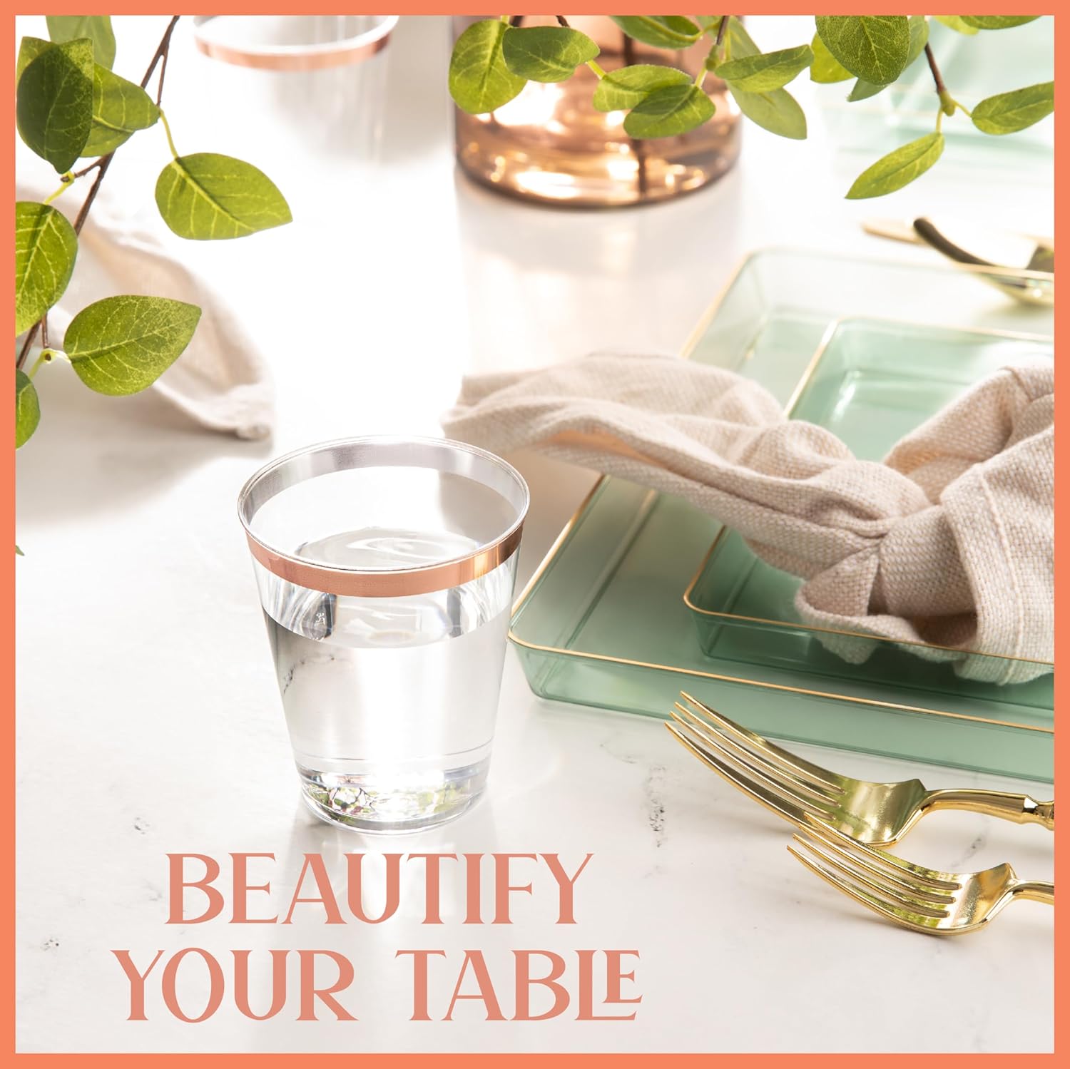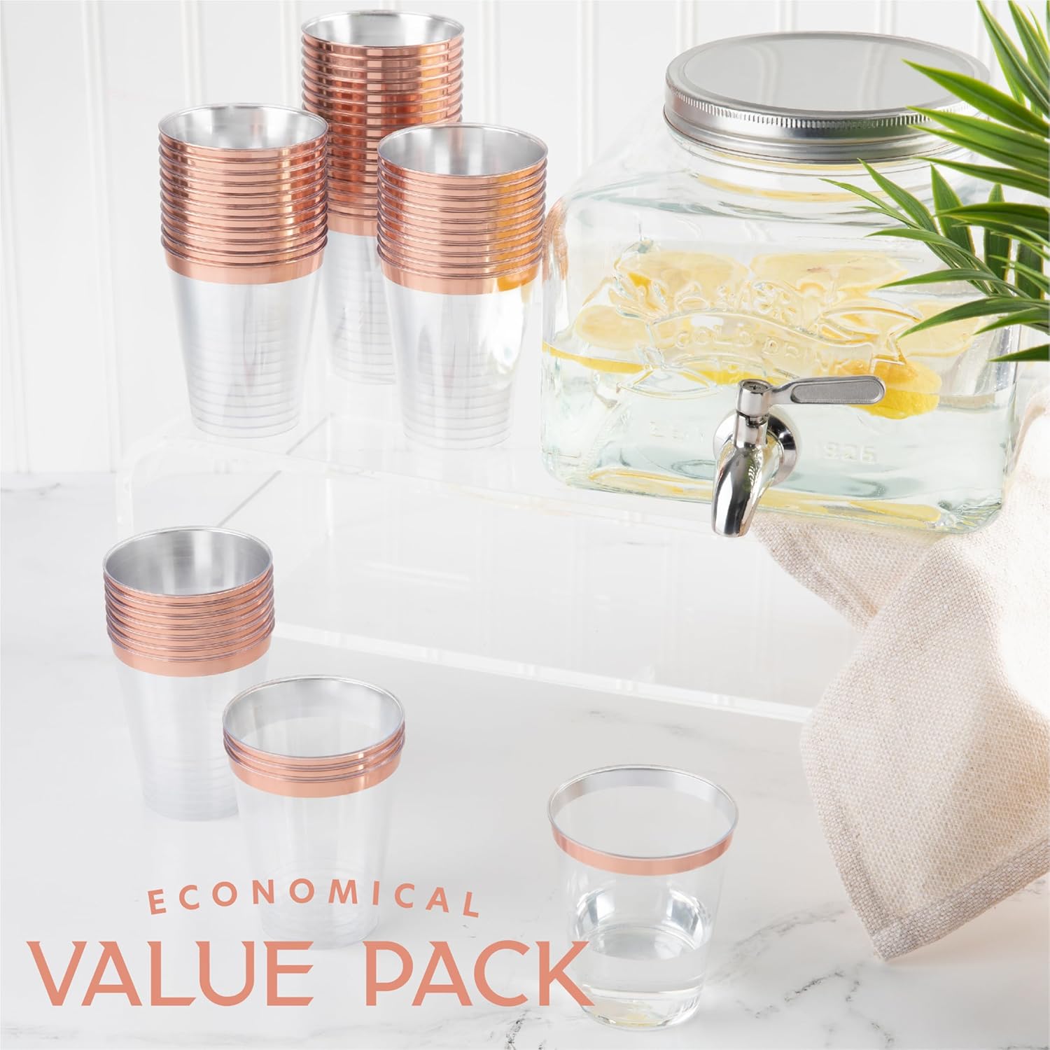 PLASTICPRO Disposable 7 oz Crystal Clear Plastic Tumblers With Rose Gold Rim for Party's & Weddings pack of 100