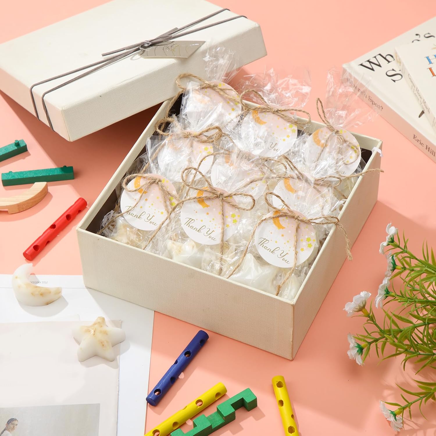 Demissle 20 Pcs Baby Shower Favors Soaps Moon and Star Shaped Bath Soaps with White Thank You Cards Showing Love Gifts for Guest Return Prizes Gender Reveal Birthday Party Decor