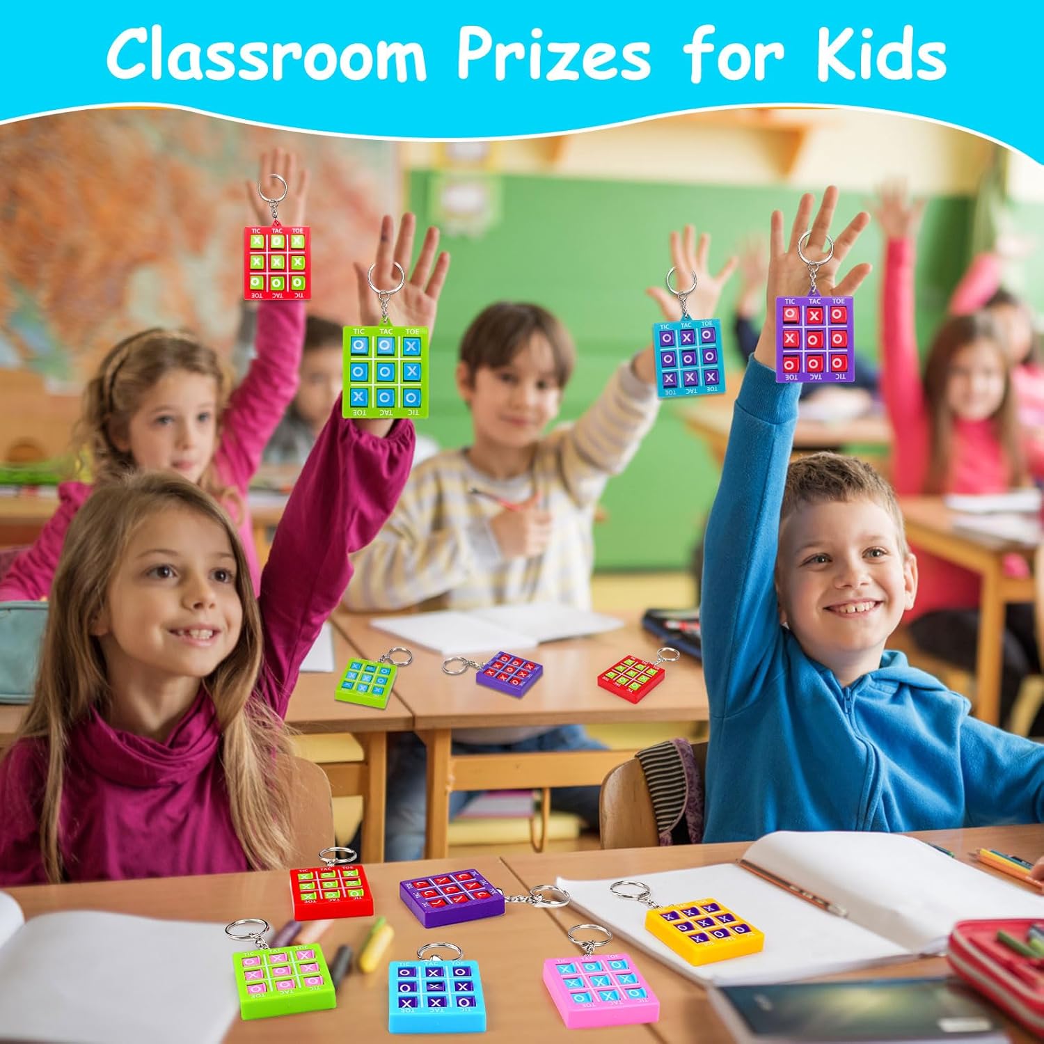 - 💝【Premium Quality Prizes Supplies】Our bulk keychains for kids are child-safe, non-toxic, BPA-free and meet US toy standards. The colorful tic-tac-toe keychains are made of high quality plastic, and the keychain for kids itself is made of metal, which is sturdy and durable, not easy to break or deform, can be used for a long time. Awesome party favors for kids 4-8 8-12, Prize box toys for teens classroom, kids prizes for rewards for school, Halloween goody bag stuffers, christmas goodie bag stuffers for kids,