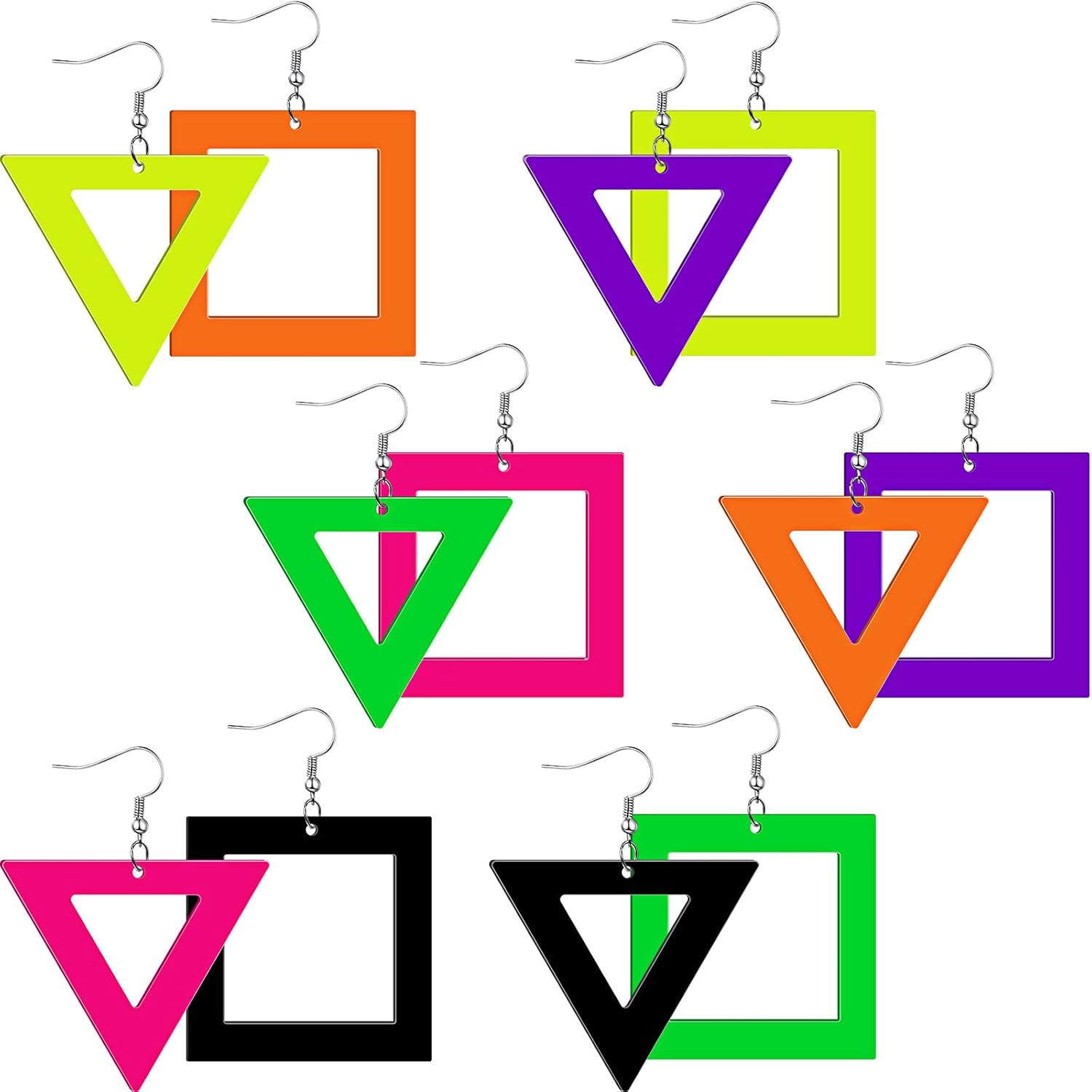 - Classic Neon Color Palette: covering classic neon hues like pink, green, purple, black, and orange, these retro neon earrings flexibly pair with different clothing styles, whether it's a bright party outfit, a simple daily look, or Halloween themed attire