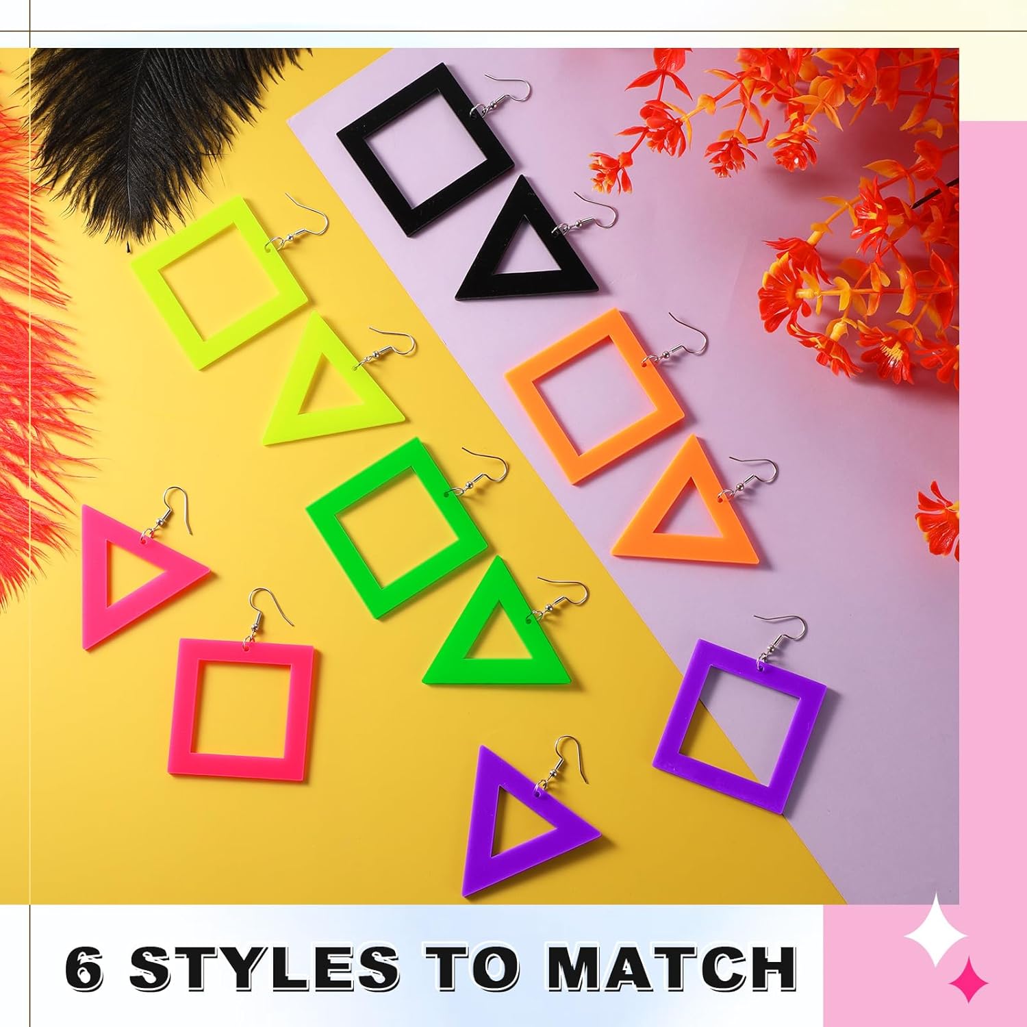 - Comfort and Durability: crafted from acrylic material, the 80s retro acrylic earrings have a smooth surface; They are lightweight and won’t weigh down your ears, ensuring comfort even during extended wear; The neon colors are bright and fade resistant, with wear resistant properties for daily use