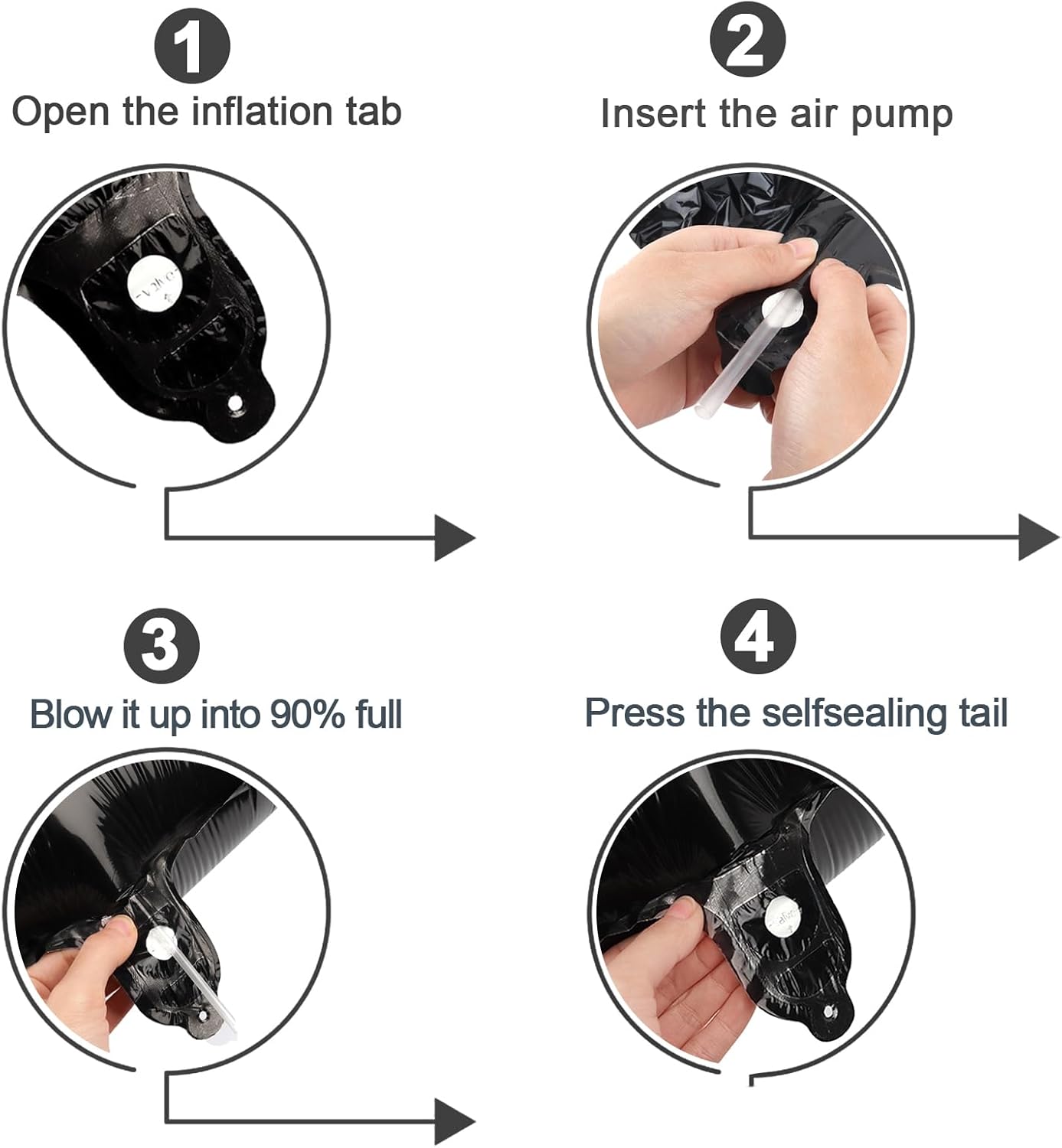 - 【Save Time and Effort with a Balloon that Self-Seals and Reusable】You could manually use your mouth on the straw with natural air to inflate or deflate the 7 number balloon. Just simply locate the end with arrow tab, pull the number 7 balloon open, and use the straw to blow air into the black number balloon until it's 90% fully inflated. After the party, deflate the 7th birthday decorations for girl or boy by opening the tab and using a long straw to release the air.