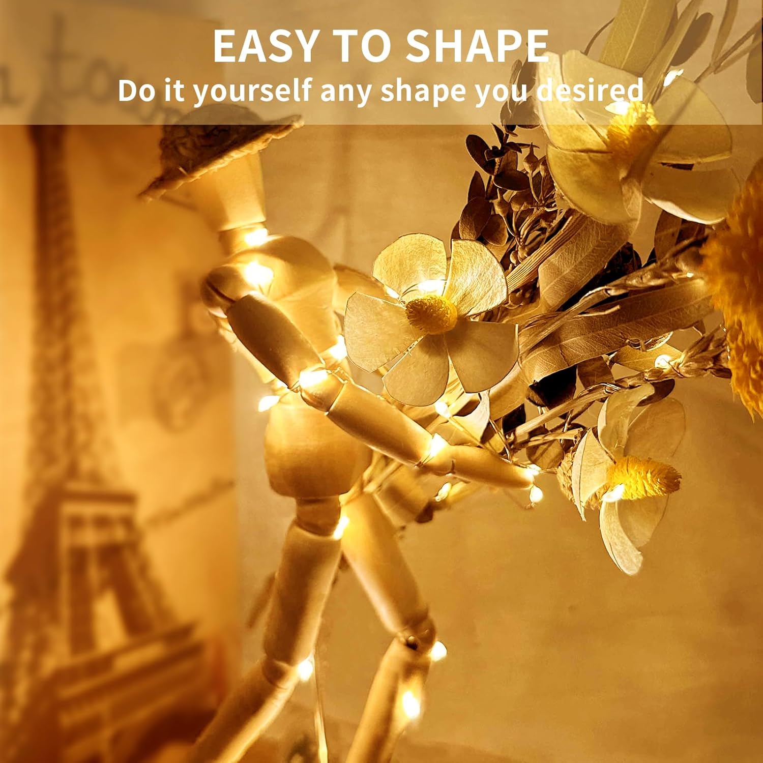 - 【FLEXIBLE AND SHAPELY LIGHTS】-- The silver wire starry moon lights are made of flexible copper wire material,you can easily bend it into any shape or entangle it around anything you want,such as Valentine's Day wreaths,Christmas trees,Wedding bouquets,Easter Egg,Mason jar,Halloween costume,Pumpkin lampand and more.