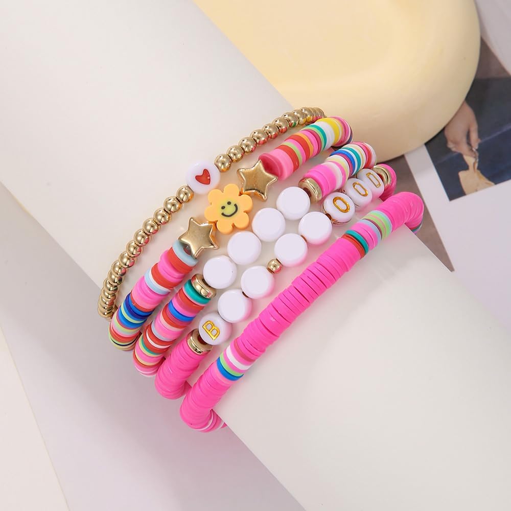 - Heishi Surfer Bracelets Set - For beach jewelry, aesthetic stuff Bracelets Jewelry we love a mix color of effortless layering bracelets. Bold and vibrant, the Bohemia bracelets are consist of flat clay beads and gold plated sequins on elastic bands.One package including 16 strands of heishi bead and gold bead bracelet, playful, colorful and stretch.