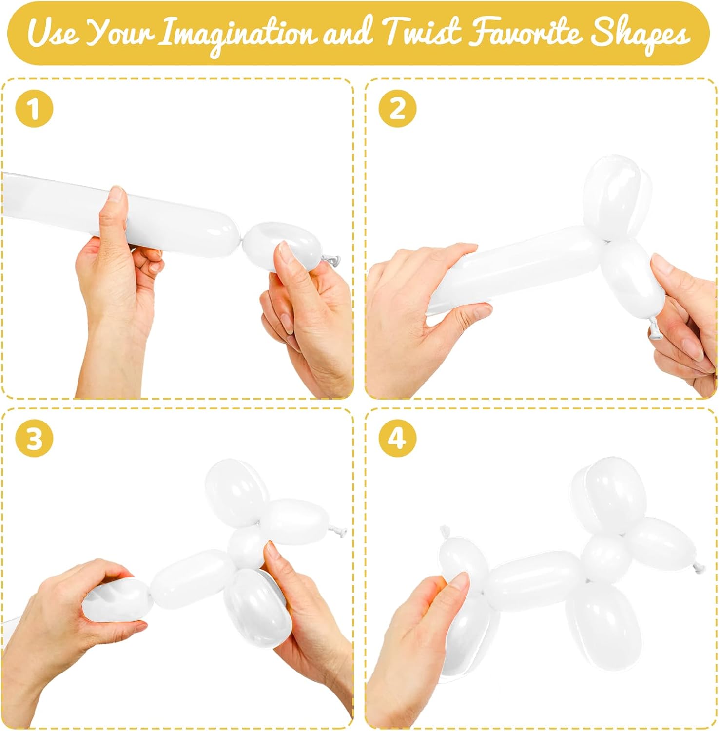 - Make a cute balloon doll:The white latex long balloons for tying are long enough to be twisted into various shapes, such as animals, flowers or other shapes. This long white balloons are very popular!