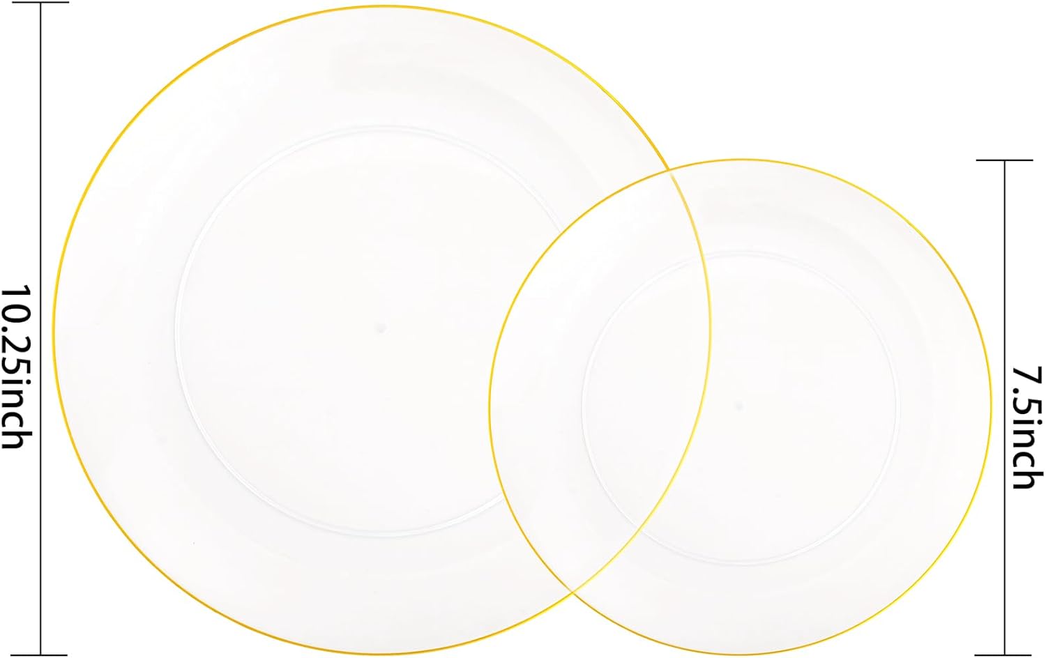 - VALUE PACKAGE: Our clear plates with gold rim include 50 clear gold dinner plates and 50 clear gold dessert plates, which can satisfy a party of 50 guests.