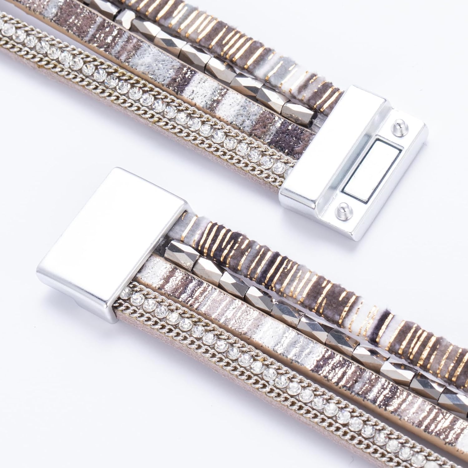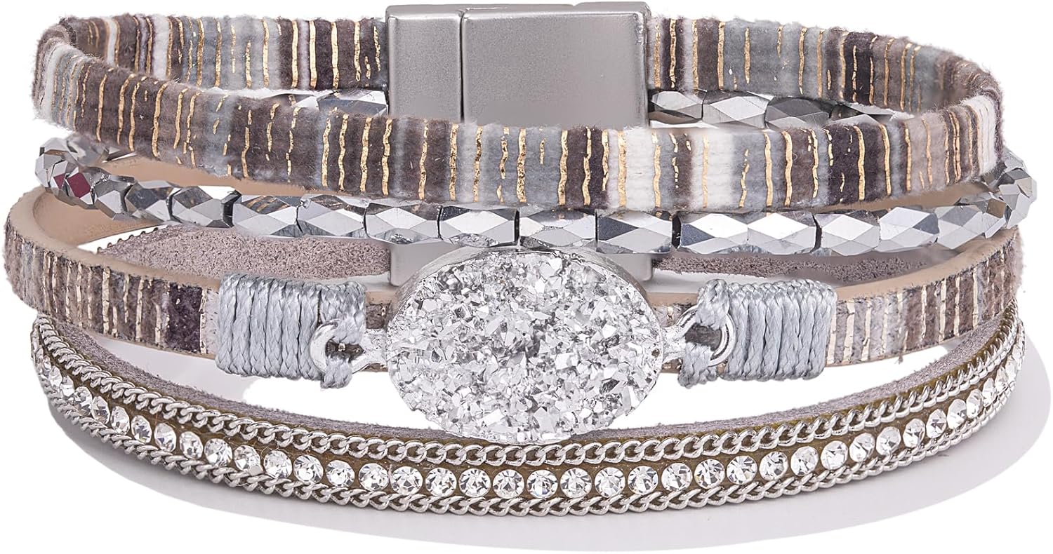 FANCY SHINY Leather Wrap Bracelet Boho Cuff Bangle Bracelets Crystal Bead Bracelet with Magnetic Clasp Jewelry Gifts for Women