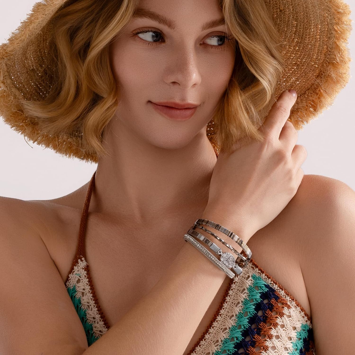 - Unique Design: Grey bangle bracelet wraps around your wrist and sparkles with strands composed of resin stone and a single strand featuring crystal beads.