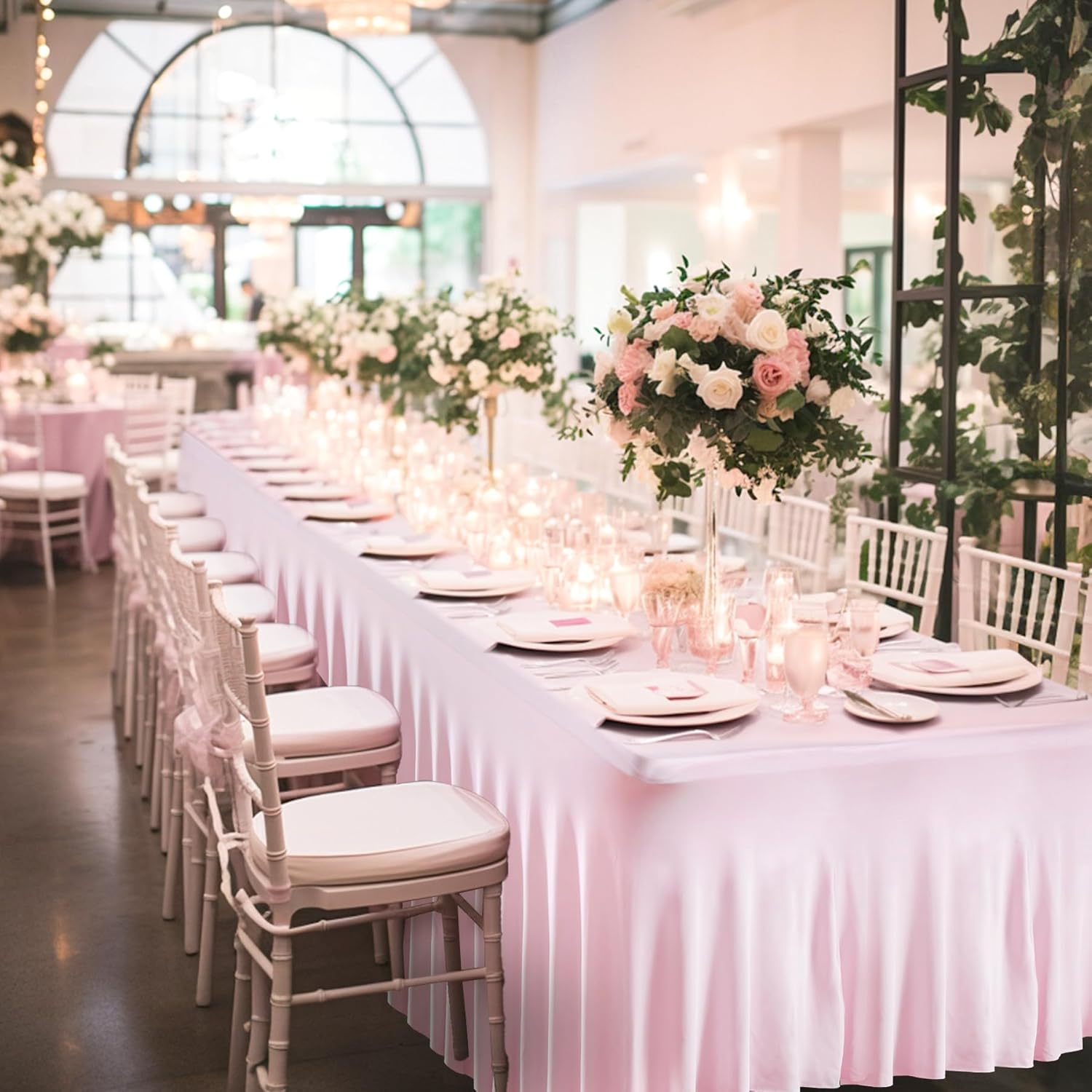 - 【Unique Design Spandex Table Cloth】 - 2-in-1 spandex tablecloth - A pink fitted table cover and table skirt combined in a single piece. Its unique fitted design ensures a perfect fit for desk and tables, while simultaneously functioning as an elegant table skirt to enhance the overall appearance of your banquet or event table. Our fitted tablecloth is specifically designed to save your time and simplify the decoration process, making banquette table decoration look elegant and neat.