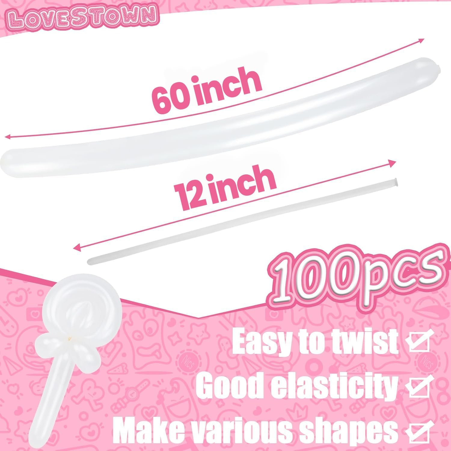 - Easy to Inflate - Our long twisting balloons are initially 12 inches long before inflation and expand to 60 inches after inflating. You have the flexibility to choose the desired length based on your needs. Please exercise caution and avoid overinflating, leaving some length to prevent bursting when twisting.