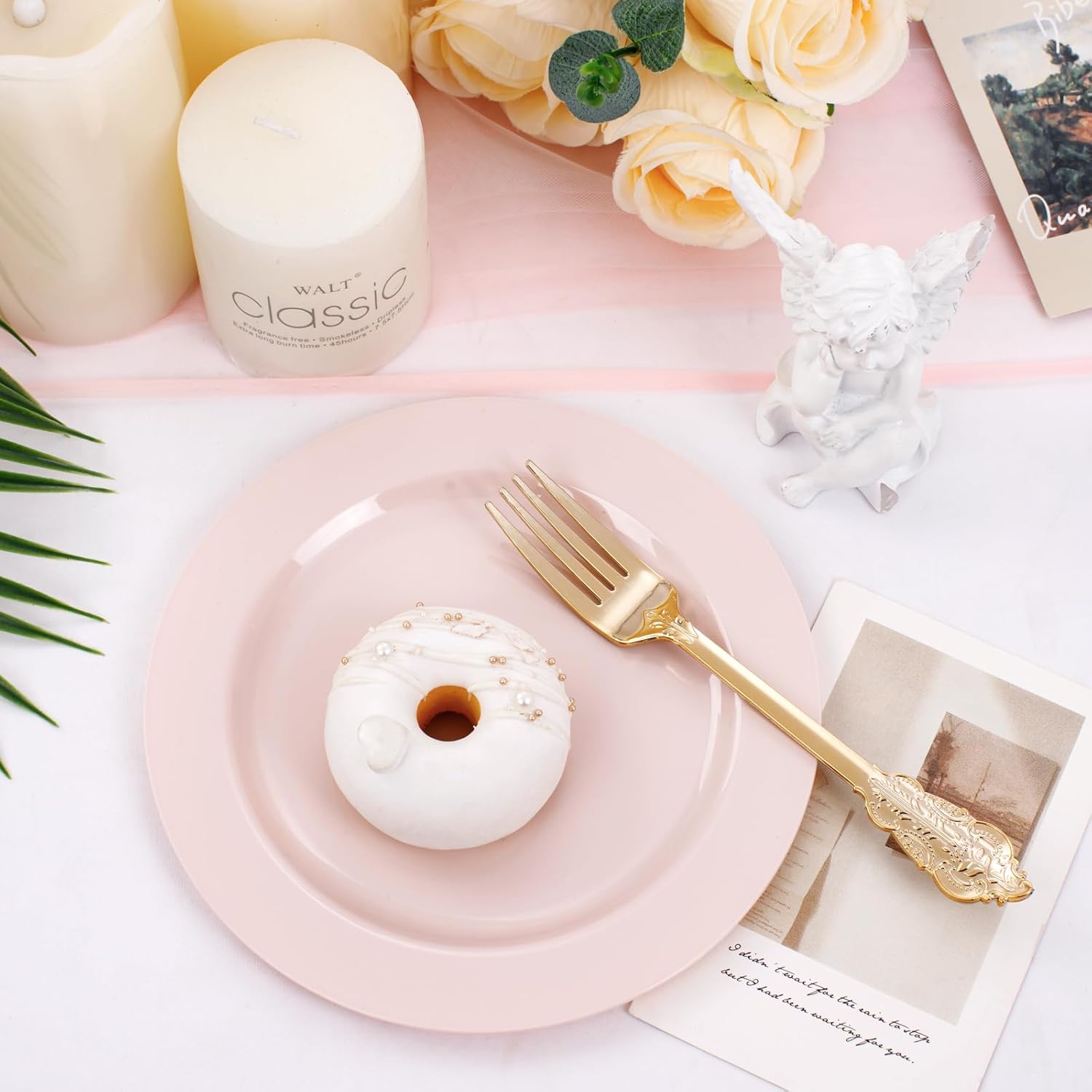 - GREAT VALUE PACK: This shell pink set contains 100 pink plates 50*10.25inch pink dinner plates,50*7.5inch pink dessert plates, which can serve 50 guests Meet your daily requirements.