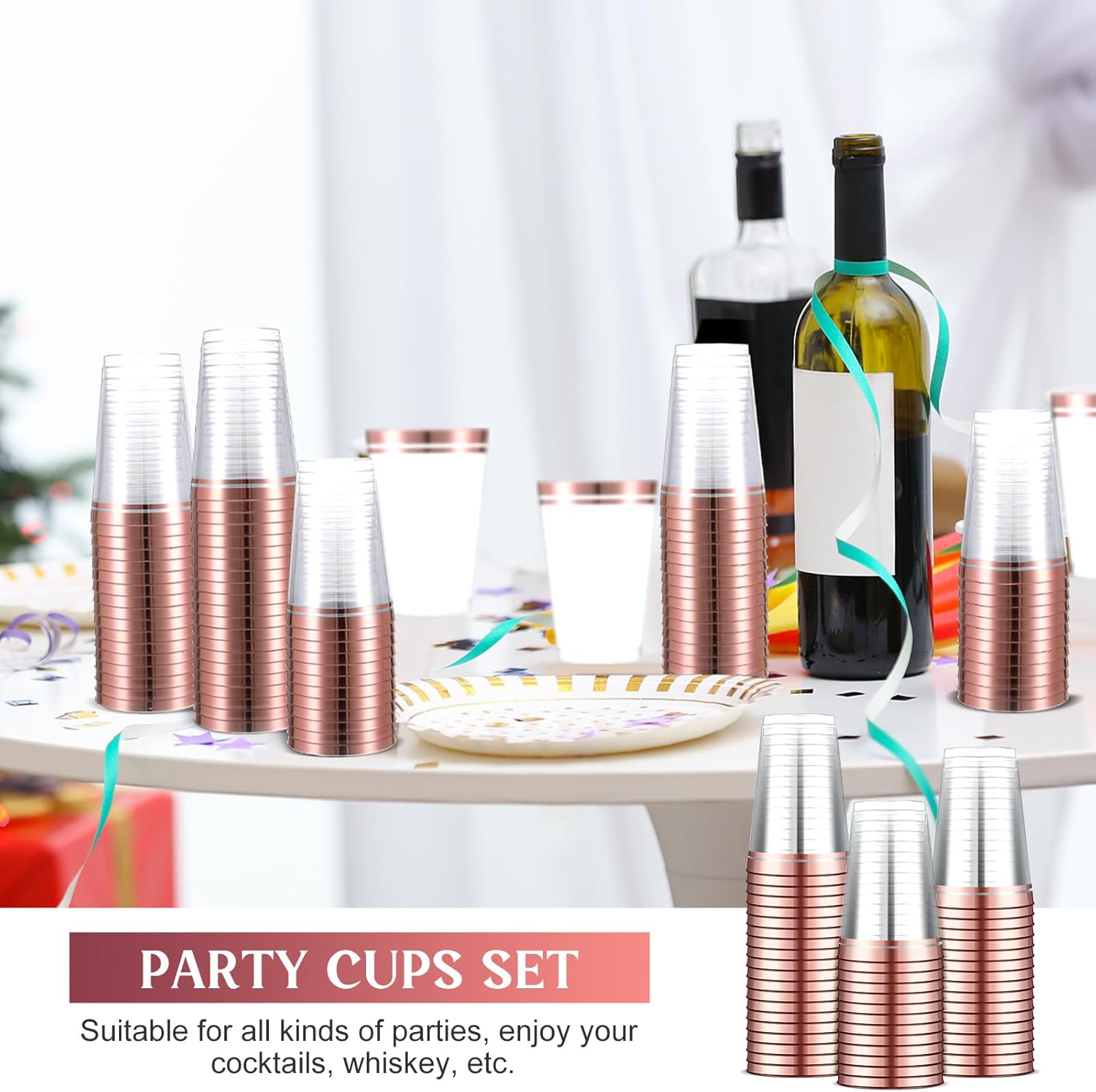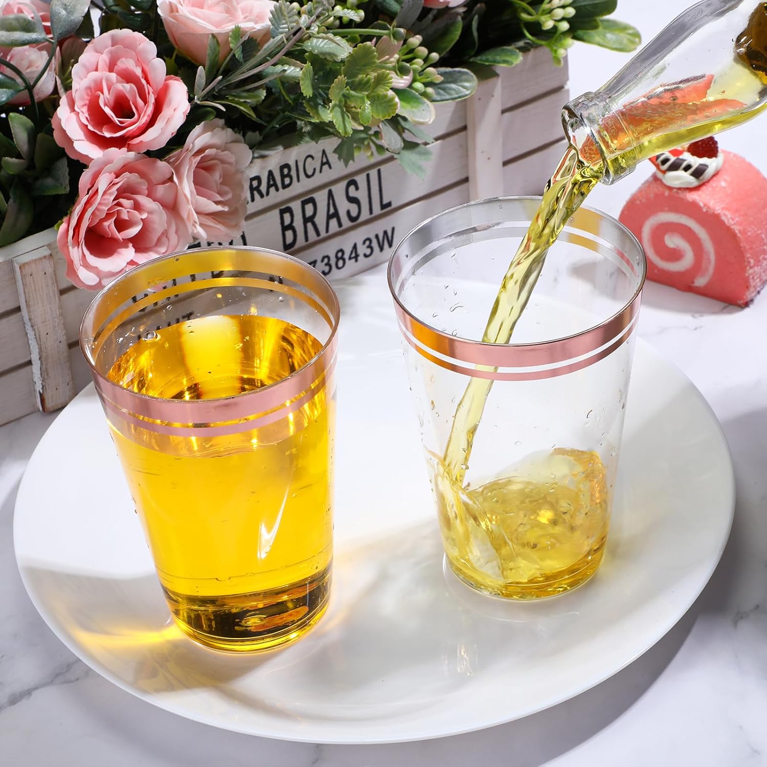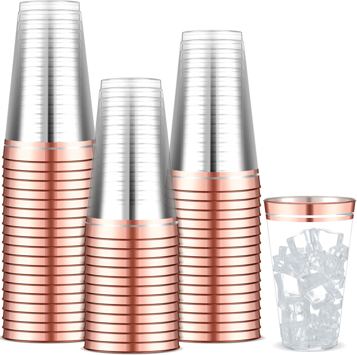 - Sturdy Material: our wedding disposable cups are made of quality plastic, will not easily scratch or break; You can rest assured that it is a good choice for indoor or outdoor use, and the embellished rose gold rim is not easy to fade, and can be reused