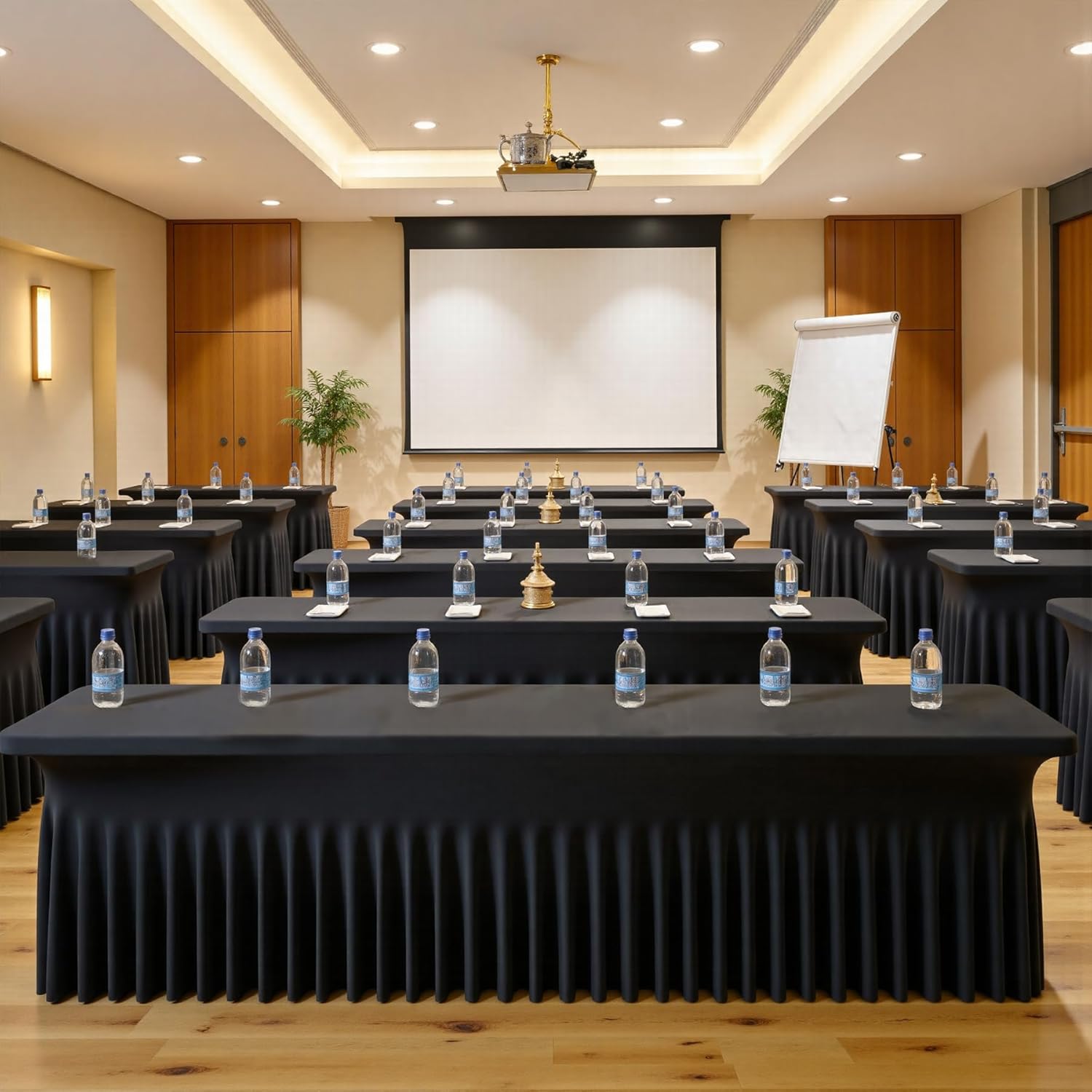 - You will receive 4 Pack Black wavy spandex table clothes table skirt fitted for 8 foot rectangle tables. Manteles de mesa de tela para fiestas.