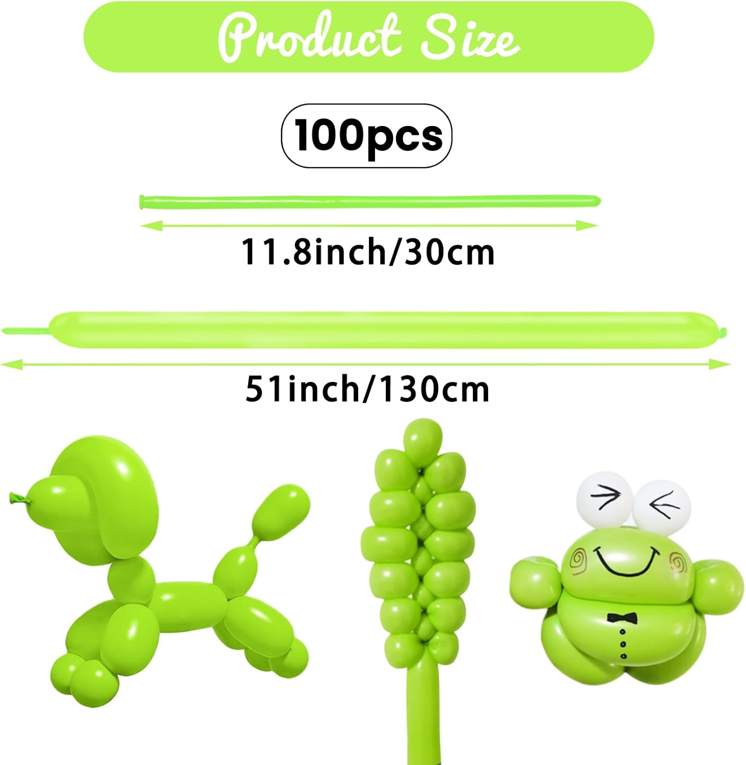 - The package includes:100 Pcs light green 260q balloons, to meet your various decoration needs. 260 balloons light green can be inflated or filled with helium. Size: 12 inches before inflation, 53-55 inches after inflation, very suitable for professional balloon artists.