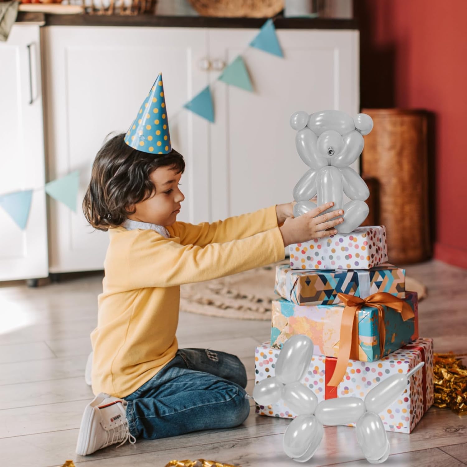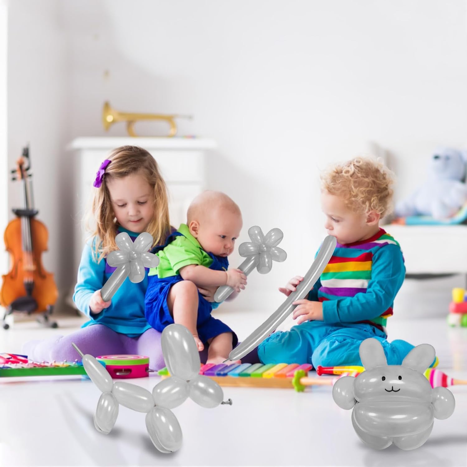 100Pcs Silver Grey 260 Balloons, Long Balloon for Tying Balloon Arch, Long Skinny Balloons for Twisting Ballons Animal balloons Birthday Party Wedding Festival Decorations