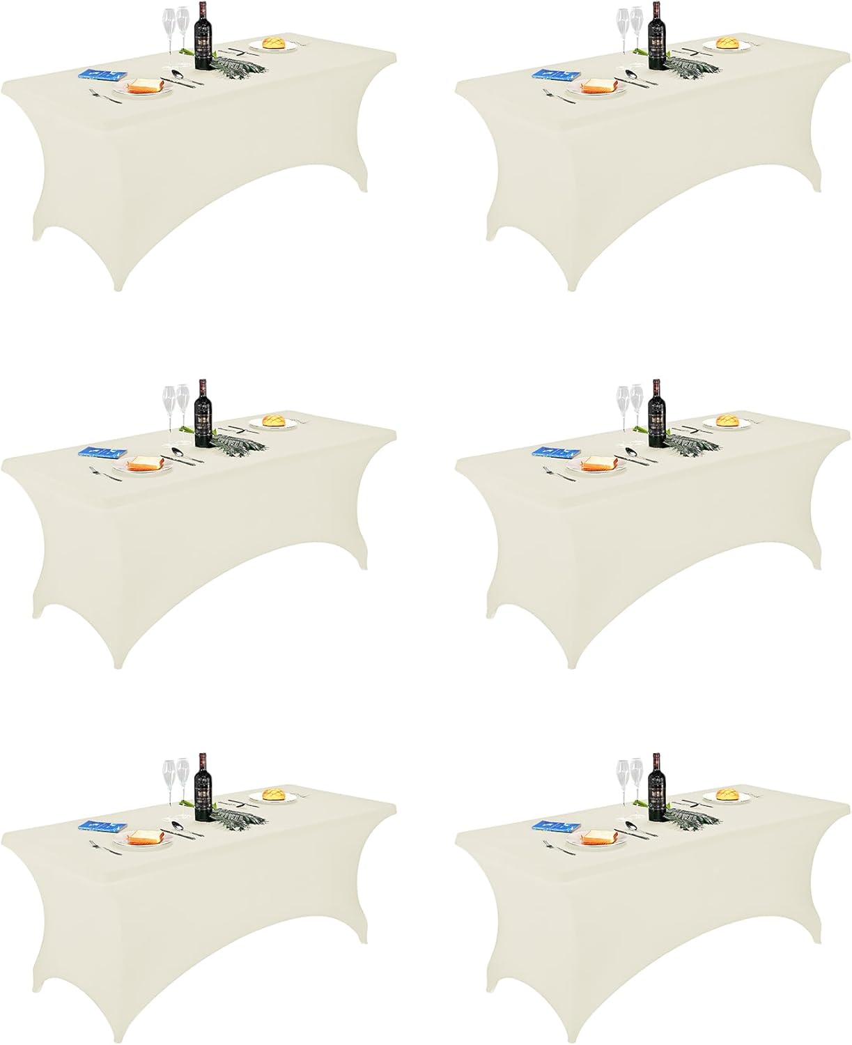 FORLIFE 6Pack Spandex Table Covers 6ft,Fitted Tablecloth for 6ft Rectangular Tables, Stretch Patio Table Covers, Universal Spandex Table Cover for Wedding, Banquet, Party - Ivory