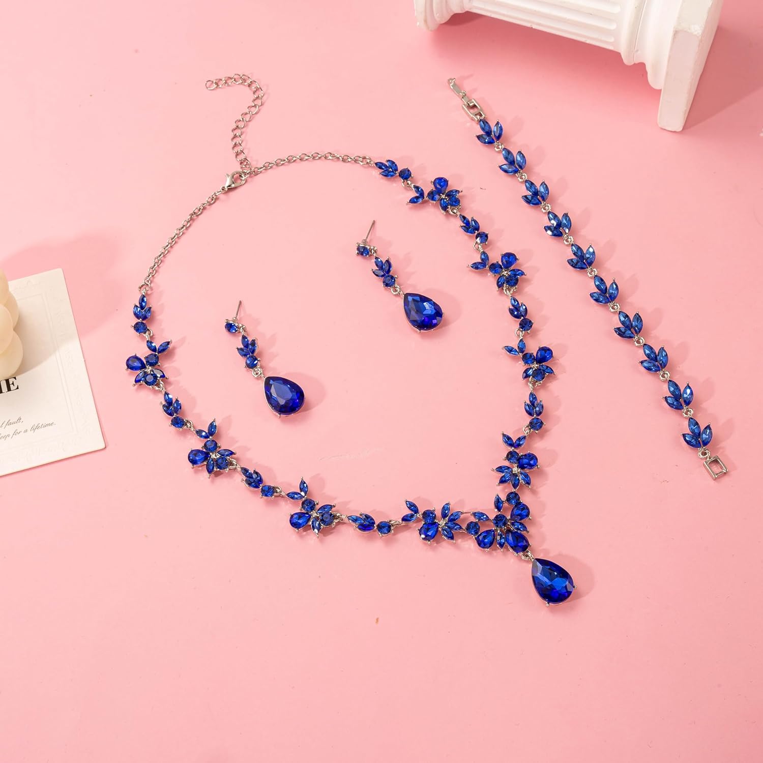- ♥ Occasions♥: Blue bride necklace earrings bracelet jewelry set for brides bridesmaids is suitable for Wedding / Engagement / Valentines-day / Anniversary / Prom / Dinner party / Birthday party, any occasion you want to be more charming.