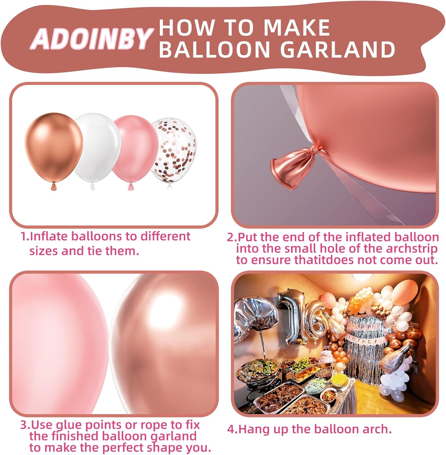 - ๐ใEasy to Assembleใ: We provide you with 2 tools that assist you to make rose gold balloon garland arch more easily. Pull the balloon knots into the ballon strip holes, Glue dots hold the balloon firmly on the balloon strip hole. It is recommended to inflate them with an electric balloon pump, saving you a lot of time to enjoy the party.