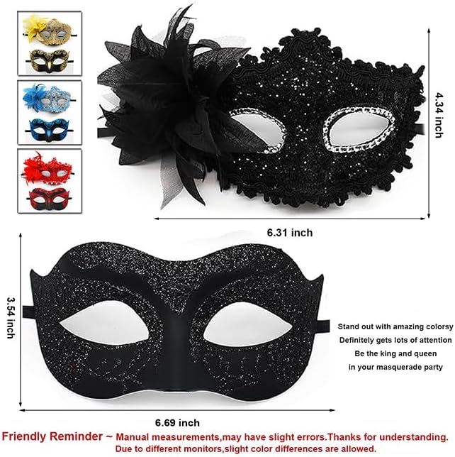 - MULTIPLE USES :The eye masks set suitable for both women and men.Perfect for Masquerade parties,Mardi gras, Festivals,Carnival themed parties,Formal balls,Halloween parties,trick-or-treat,cosplay,theatrical plays,fashion shows, pageants,New Year’s party,bridal showers and many other events and occasions.
