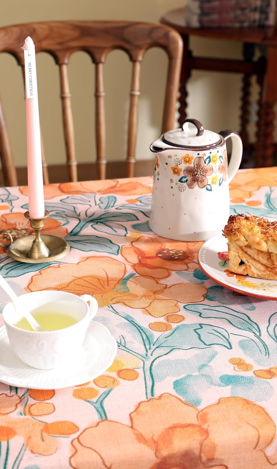 Vintage Linen Extra Long Rectangle Tablecloth,Italian Orange Floral Wrinkle Resistan Table Cloth,Decor Table Cover for Kitchen,Dining,Thanksgiving,Christmas,67"*118"-Positano