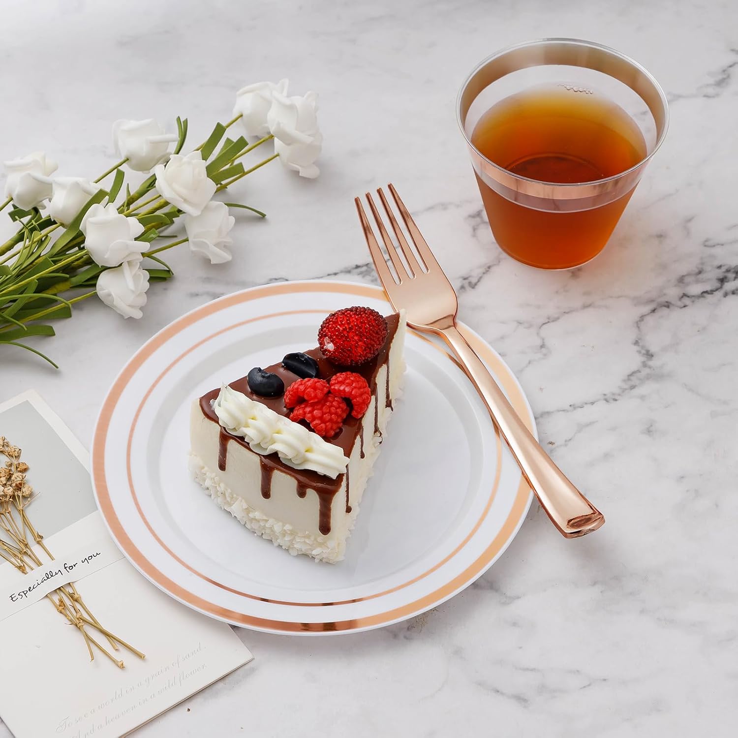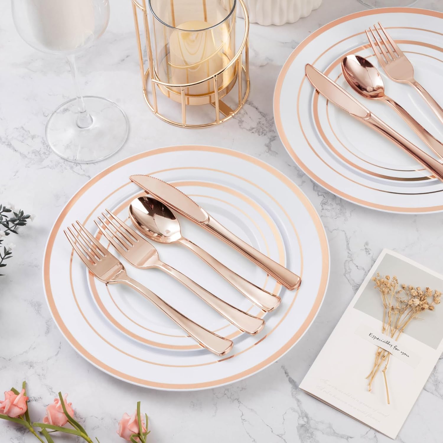 - IDEAL CHOICE FOR PARTY DECORATION - These party plates with a rose gold rim look premium and similar to porcelain. Our dishes plates add a modern decorative style to your table that's uniquely. Their elegant appearance can meet the aesthetic requirements of all people, and they can be used for any occasion.