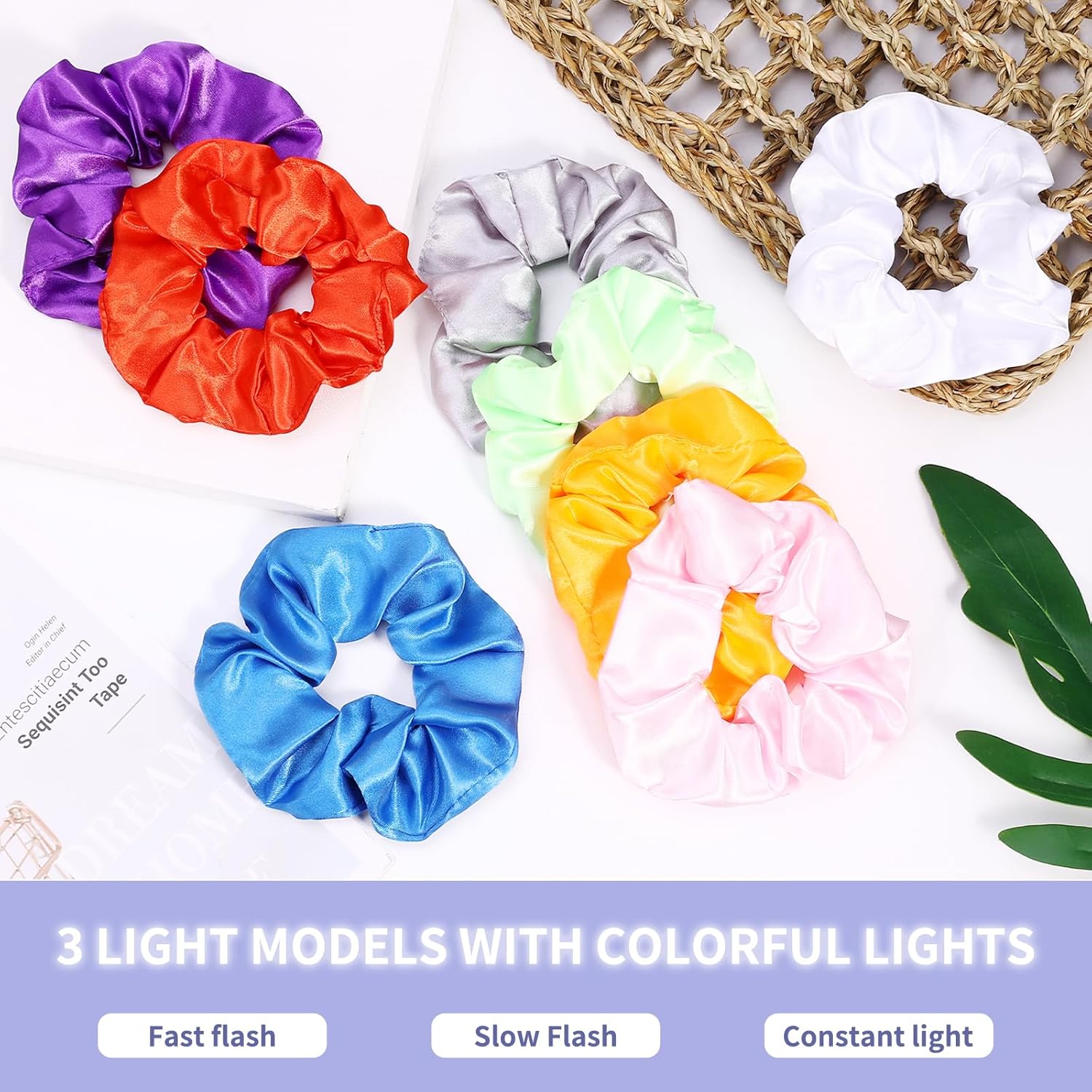 - 【14 Colors Unique Design】: Our led scrunchies for girls are unique designed with 14 different colors (white, light purple, light pink, yellow, gold, red, purple, green, blue, Jujube red, pink, grey, light blue, orange), exquisite and colorful for you to match various hairstyles and clothes. You can also wear these neon scrunchies around your wrist as light up bracelets for beautiful decoration, light up your beauty
