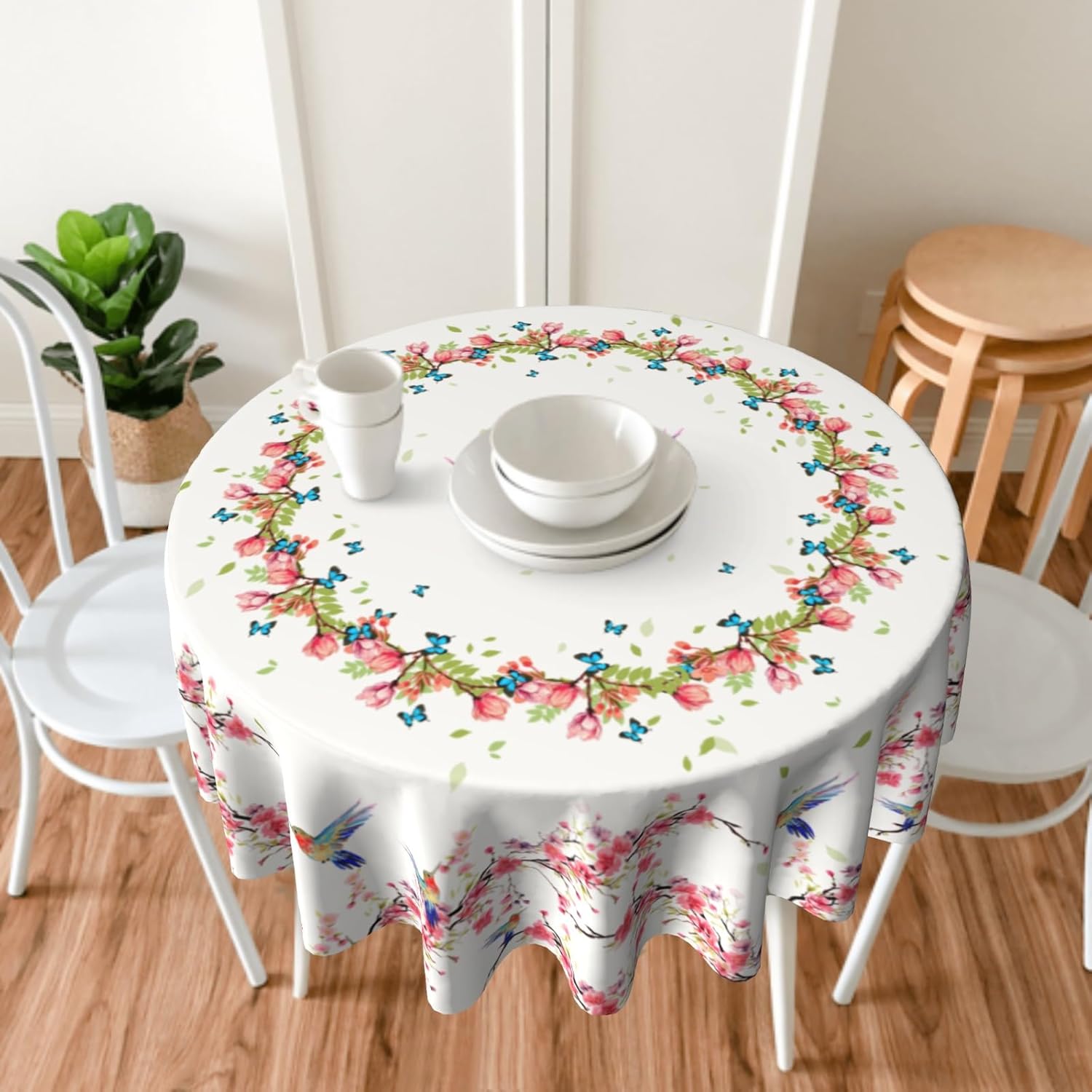 - UNIQUE DESIGN: The bird floral table cloth measures 60in/152cm in diamemter, which is suitable for most table size. Round table cloth can make you experience a positive energy of family reunion and bring you a sweet holiday atmosphere in daily life.
