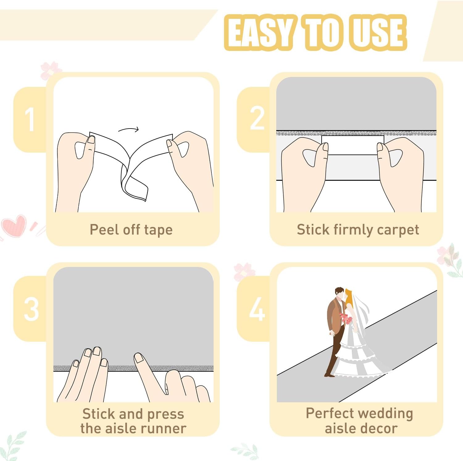 - ✿【Carpet Tapes of Wedding Walkway Runner】The gold carpet slide easily on the floor, so it is equipped with carpet tapes to secure the carpet on the floor well, and you can peel the tapes easily after use, which will not leave marks on the floor.