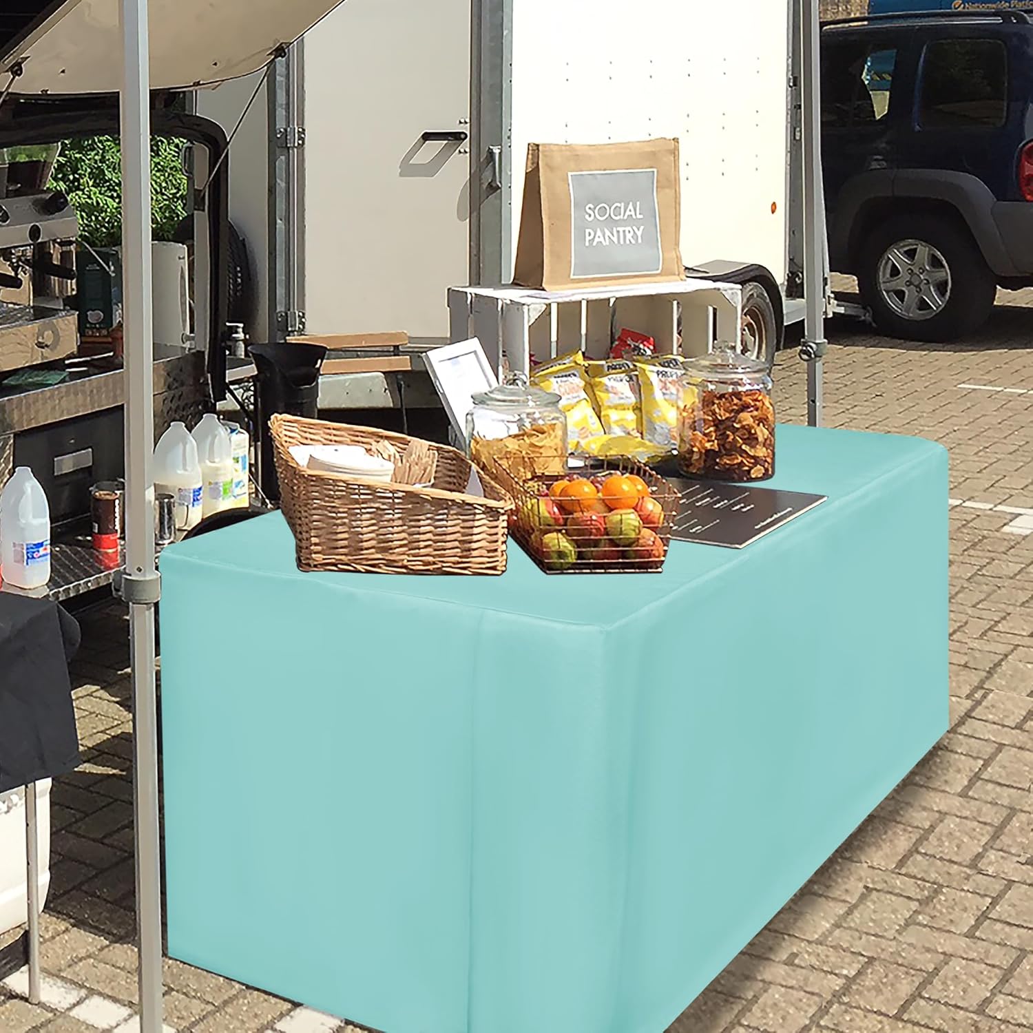 HolidayIdeas Fitted Table Covers - 96 x 30 Inch - 2 Pack Rectangle Tablecloths for 8 Foot Tables, Polyester Fabric Tablecloth for Parties, Holiday Dinner, Trade Show (Aqua)