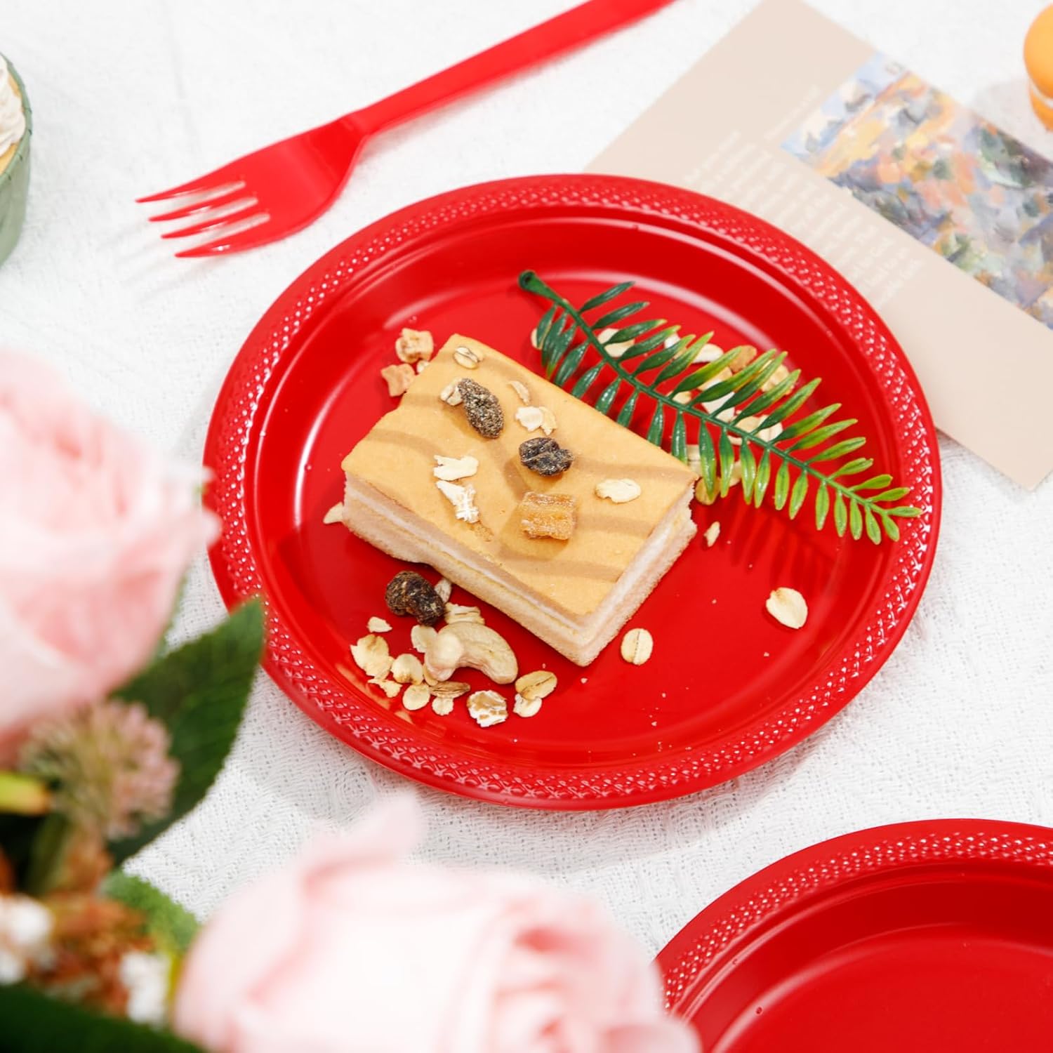 - 【Disposable & Convenient】These red disposable plates save you the trouble of washing dishes, giving you more time to enjoy your activities. With these red dessert plates, there is no need for scrubbing, simply dispose of them after use. Take out the mess and the stress when it comes to party planning