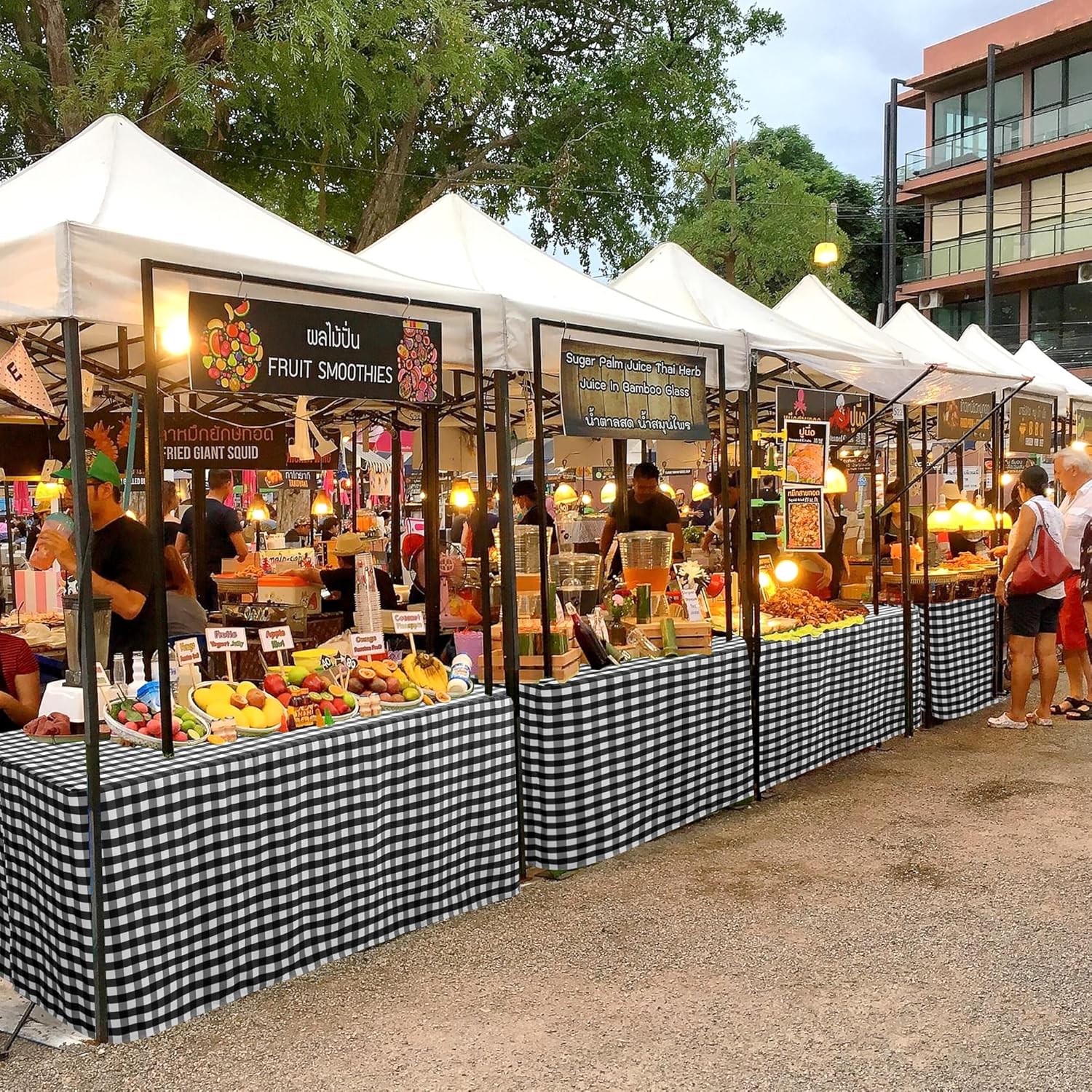 - Buffalo plaid design instantly transforms an unsightly banquet or folding table into a highly chic presentation for any event. Great for outdoor picnic, banquet, trade shows, crafts show, vendor events, baby shower, BBQ and more.
