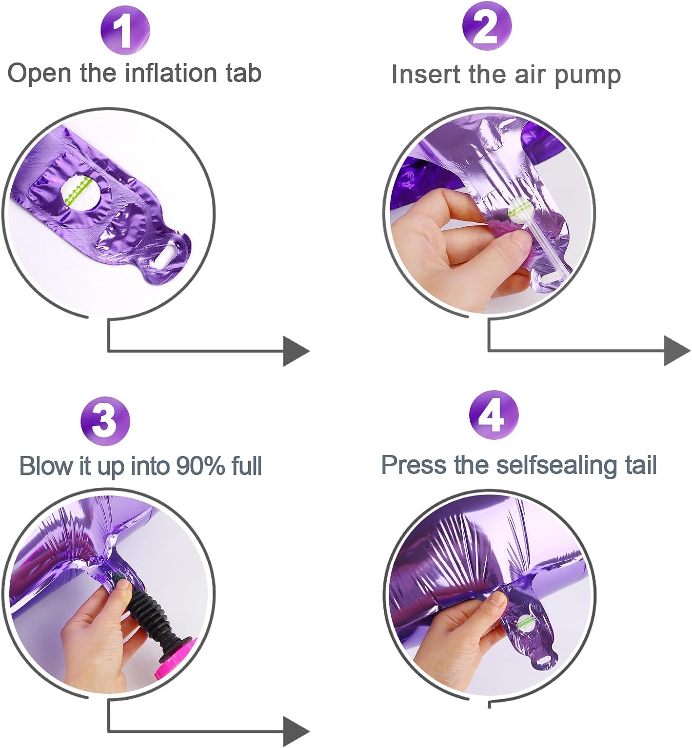 - 【Save Time and Effort with a Balloon that Self-Seals and Reusable】You could manually use your mouth on the straw with natural air to inflate or deflate the 12 number balloon. Just simply locate the end with arrow tab, pull the number 12 balloon open, and use the straw to blow air into the purple number balloon until it's 90% fully inflated. After the party, deflate the 12th birthday decorations for girl or boy by opening the tab and using a long straw to release the air.