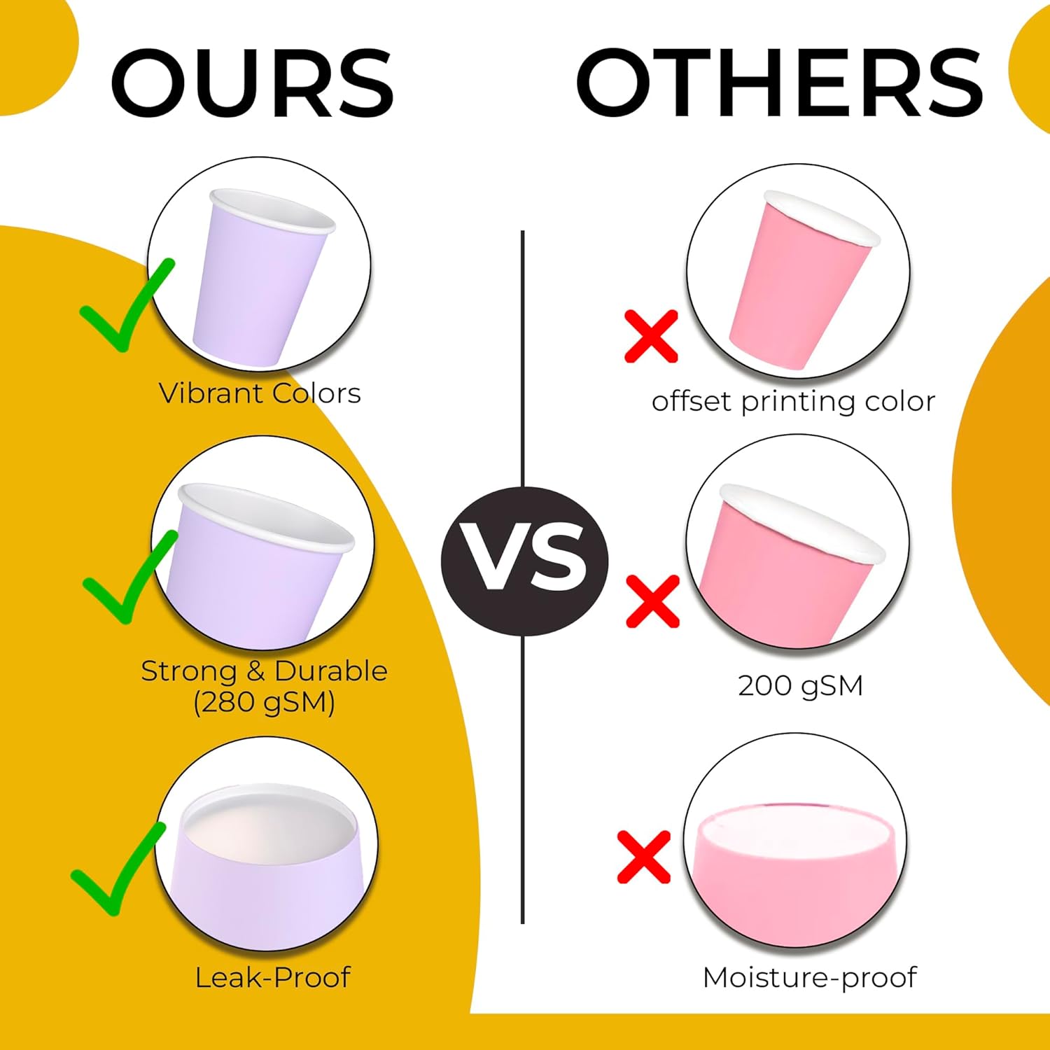 Party Solids Lavender Paper Cups 9 oz Durable Disposable Cups 1000 Paper Tumblers for Hot Drinks and Cold Drinks Thick 280 GSM Hot Cup for Tea & Coffee Cup To Go Fun Colors for Parties & Events