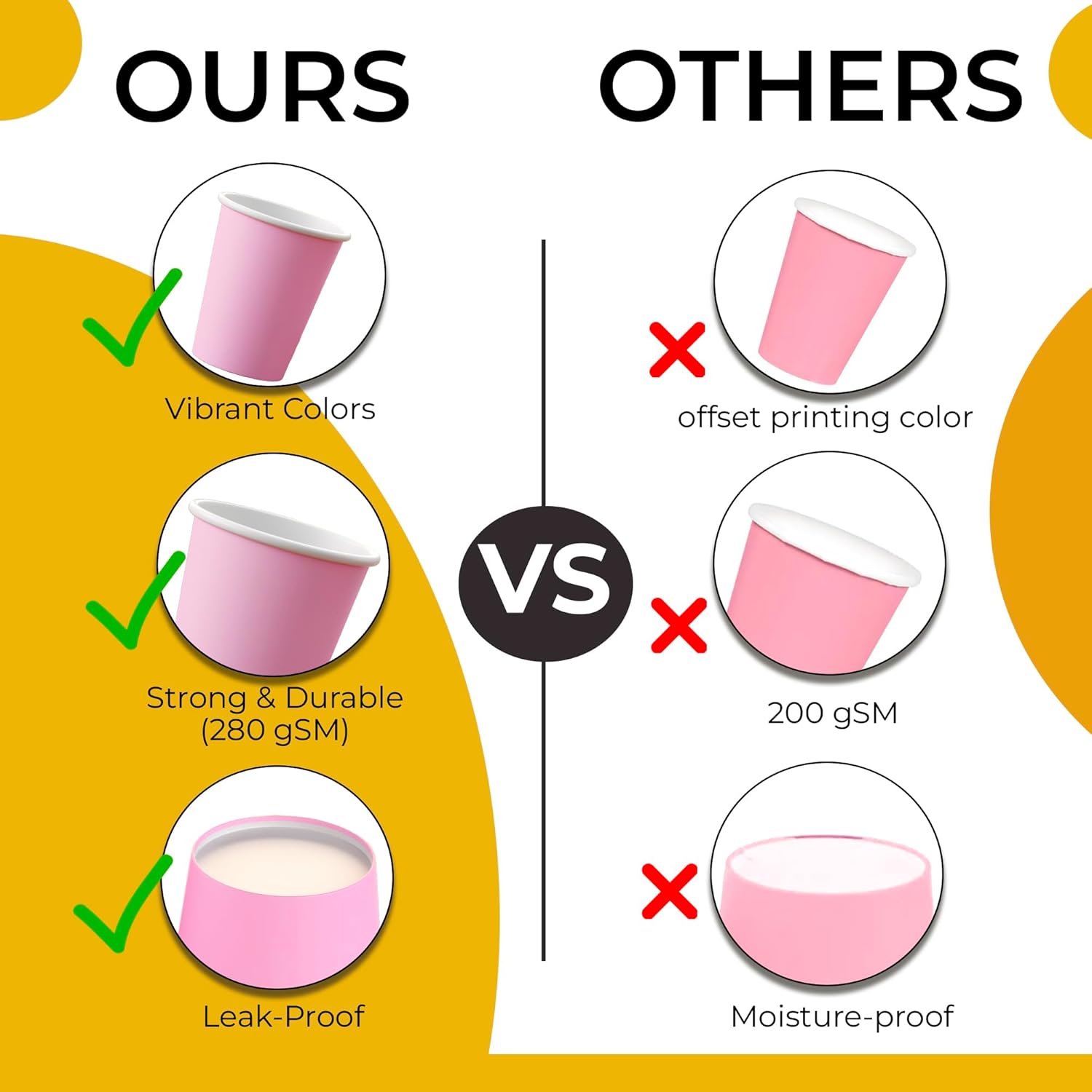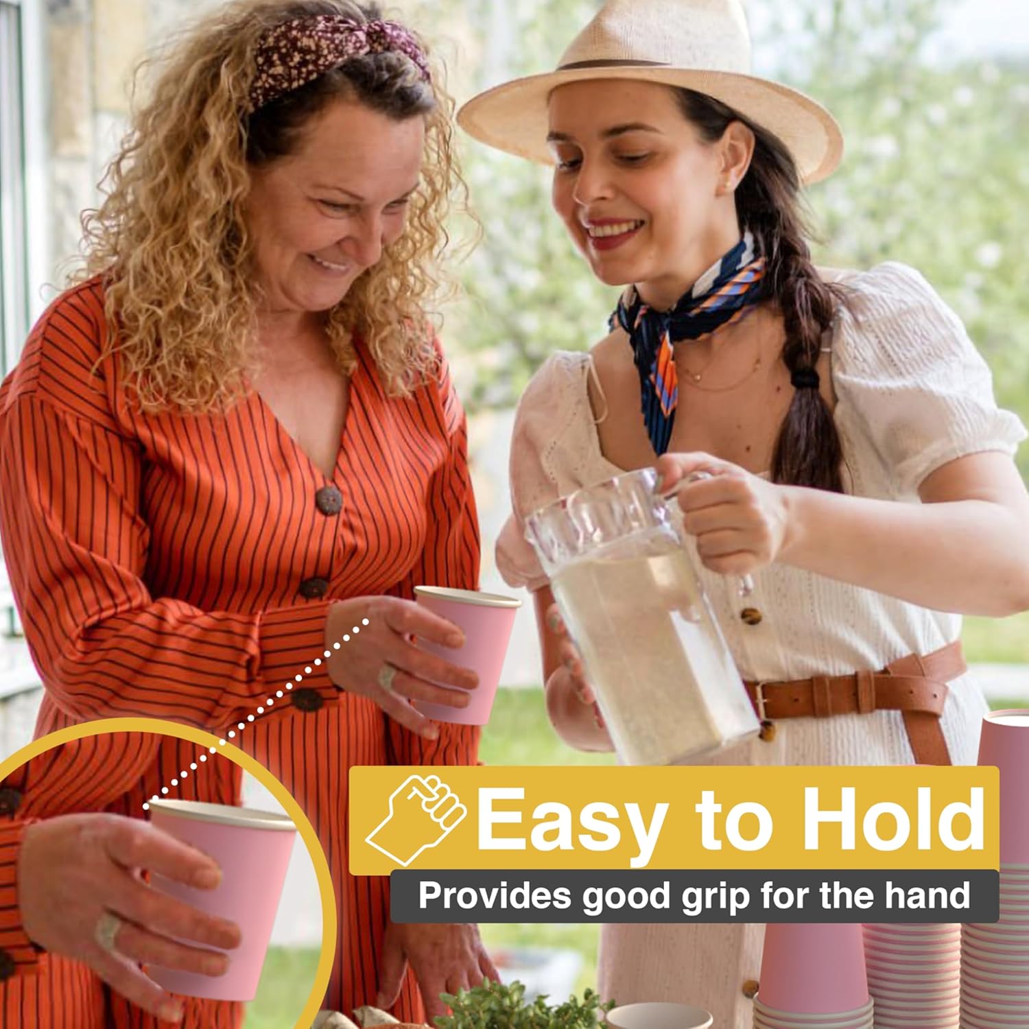 Party Solids Pink Paper Cups 9 oz Durable Disposable Cups 100 Paper Tumblers for Hot Drinks and Cold Drinks Thick 280 GSM Hot Cup for Tea & Coffee Cup To Go Fun Colors for Parties & Events