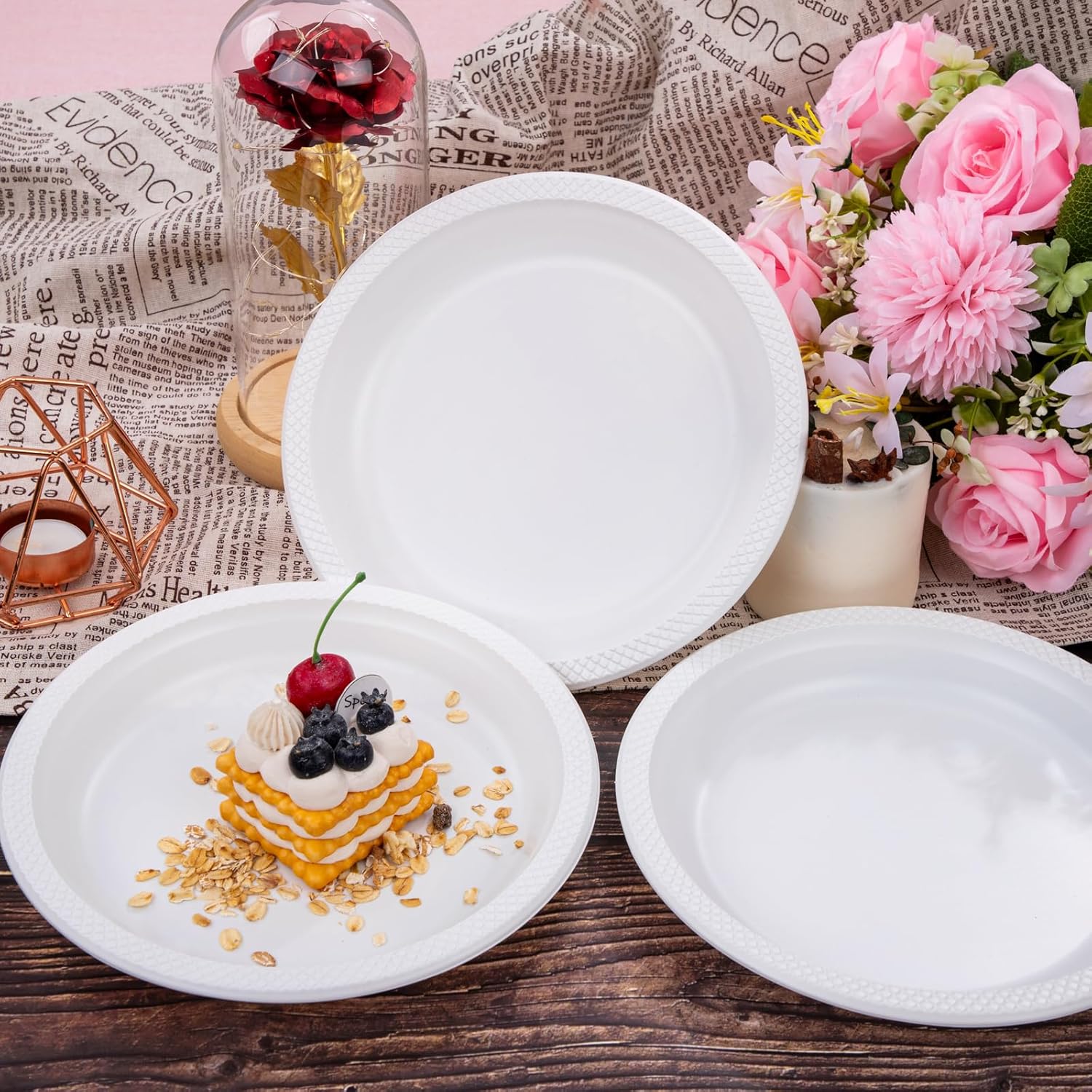 - 【Disposable & Convenient】These white disposable plates save you the trouble of washing dishes, giving you more time to enjoy your activities. With these white plates, there is no need for scrubbing, simply dispose of them after use. Take out the mess and the stress when it comes to party planning