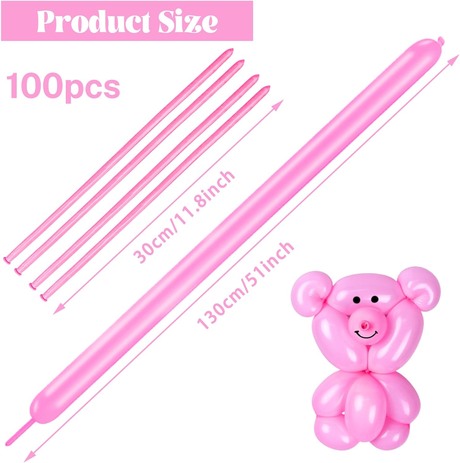 - 【Size Information】The pink twisting balloons length is 12 inches, it can be inflated to 47-53inches length, Please be careful not to expand the twisted balloon to its maximum length; When inflating, Please leave some space to avoid blowing up when twisting.