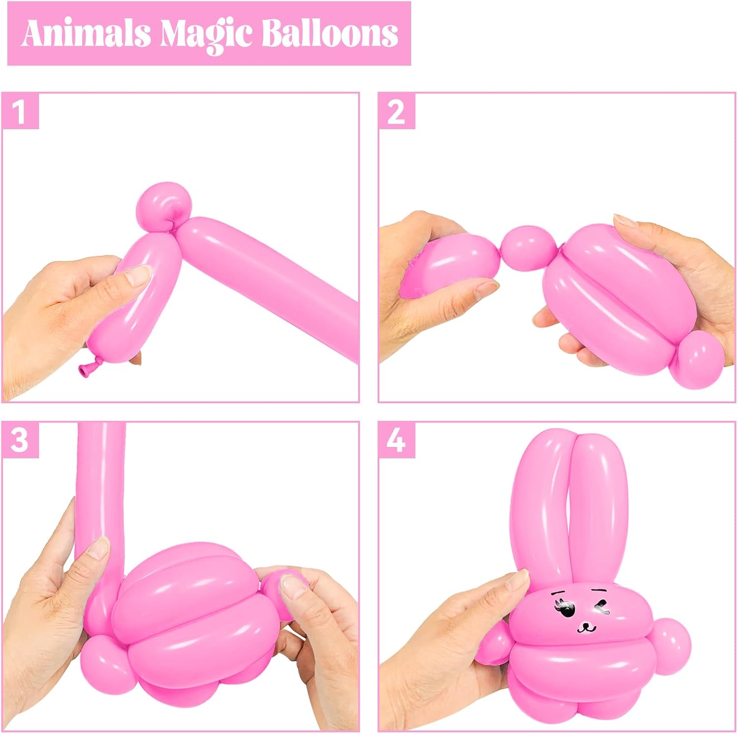 - 【DIY Magic Balloons】You will make any animals with the long modeling balloons,Very fun and interesting, Through makeing the pink long balloons into different shape(dog, Spider, bear, or any other things), It can greatly stimulate the creative thinking imagination of children.